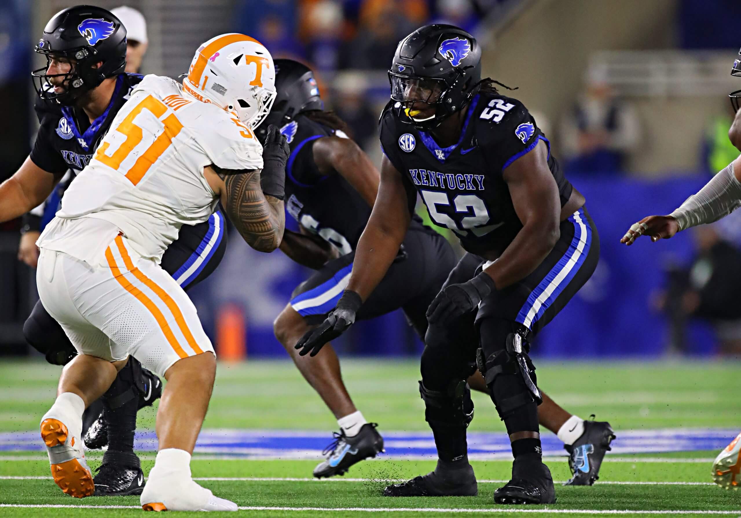 Tiernan, who finished his college career with 43 straight starts, is a large-framed blocker with controlled, efficient movements as a pass blocker that help him stay square against various pass-rush angles. His recovery skills aren’t as consistent in the run game, but his hand usage is advanced for his age.