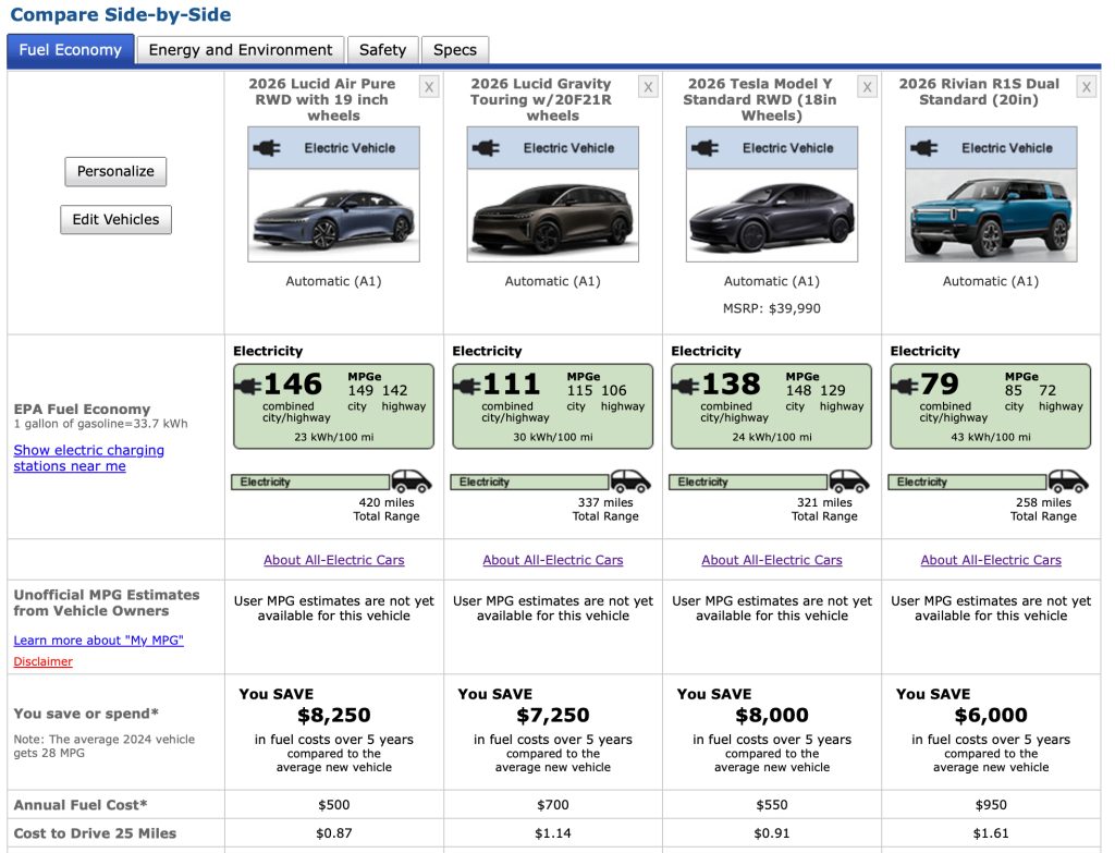 It’s also almost twice as efficient as the Rivian R1. Given that the R1 platform is not particularly efficient and the R2 looks just like a smaller version of it, it seems unlikely for the vehicle to skyrocket so highly up to the top of efficiency ratings.