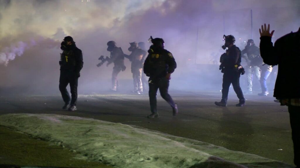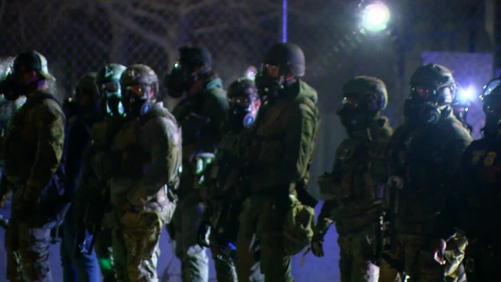 A 5 EYEWITNESS NEWS photographer at the scene captured federal law enforcement deploying chemical irritants at demonstrators.