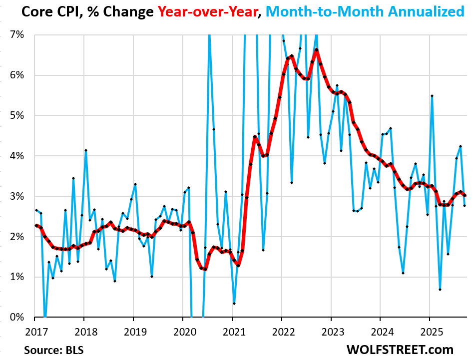 Year-over-year, overall CPI rose by 3.01%, the worst increase since May 2024, and the sixth acceleration in a row.