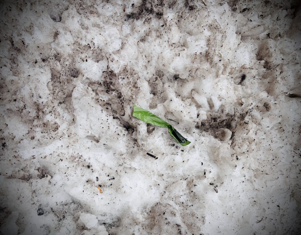 Now, as the city thaws, we’re saying goodbye to the ice and hello to everything it preserved. Wrappers, pill bottles, cigarette butts, takeout containers, an inexplicable amount of cardboard, and, yes, a faucet, are just some of the things I discovered in the melting messes. And then there’s what the dogs left behind — or rather, what their owners did. (Pupper West Siders aren’t to blame. All of them are pure as snow, and not the curb kind.)