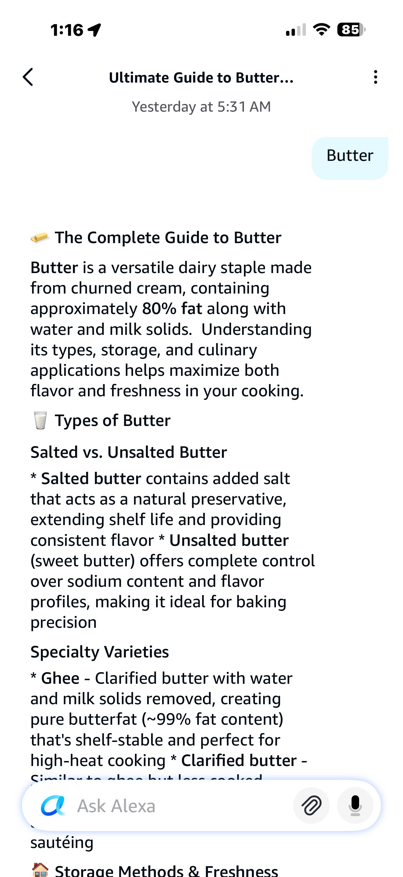 It’s the worst place for it, as the instinct is to put what you want to add to your list in there. In the Reminders app, that’s where there’s a nice big plus sign to add an item. But when I typed “butter” into Alexa Plus, I got a guide to butter.