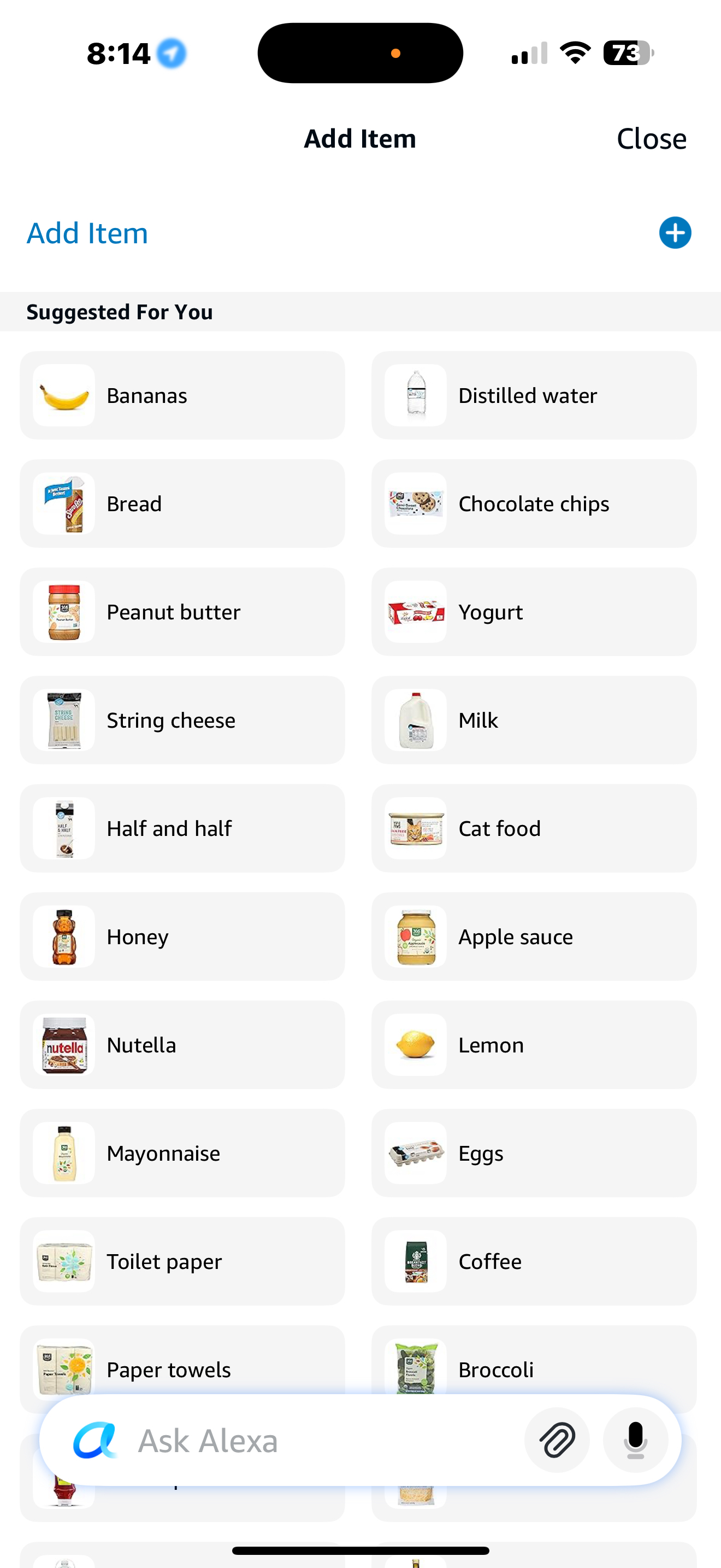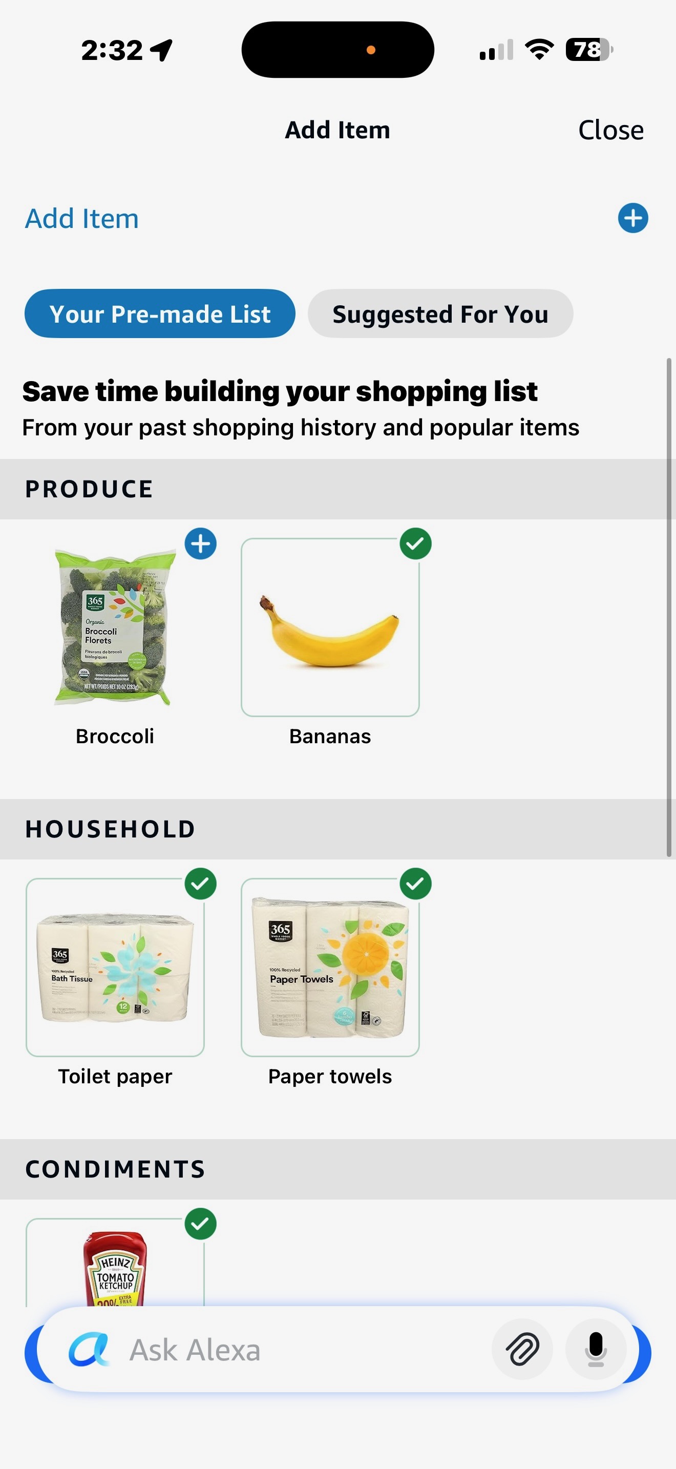 The whole process takes five taps, and that’s with the shopping list tagged as a Favorite, so it’s accessible from the app’s front page. Well, it used to be. Now I have to swipe past a new Alexa Plus chatbot card to get to Favorites. So, make that six taps in total.