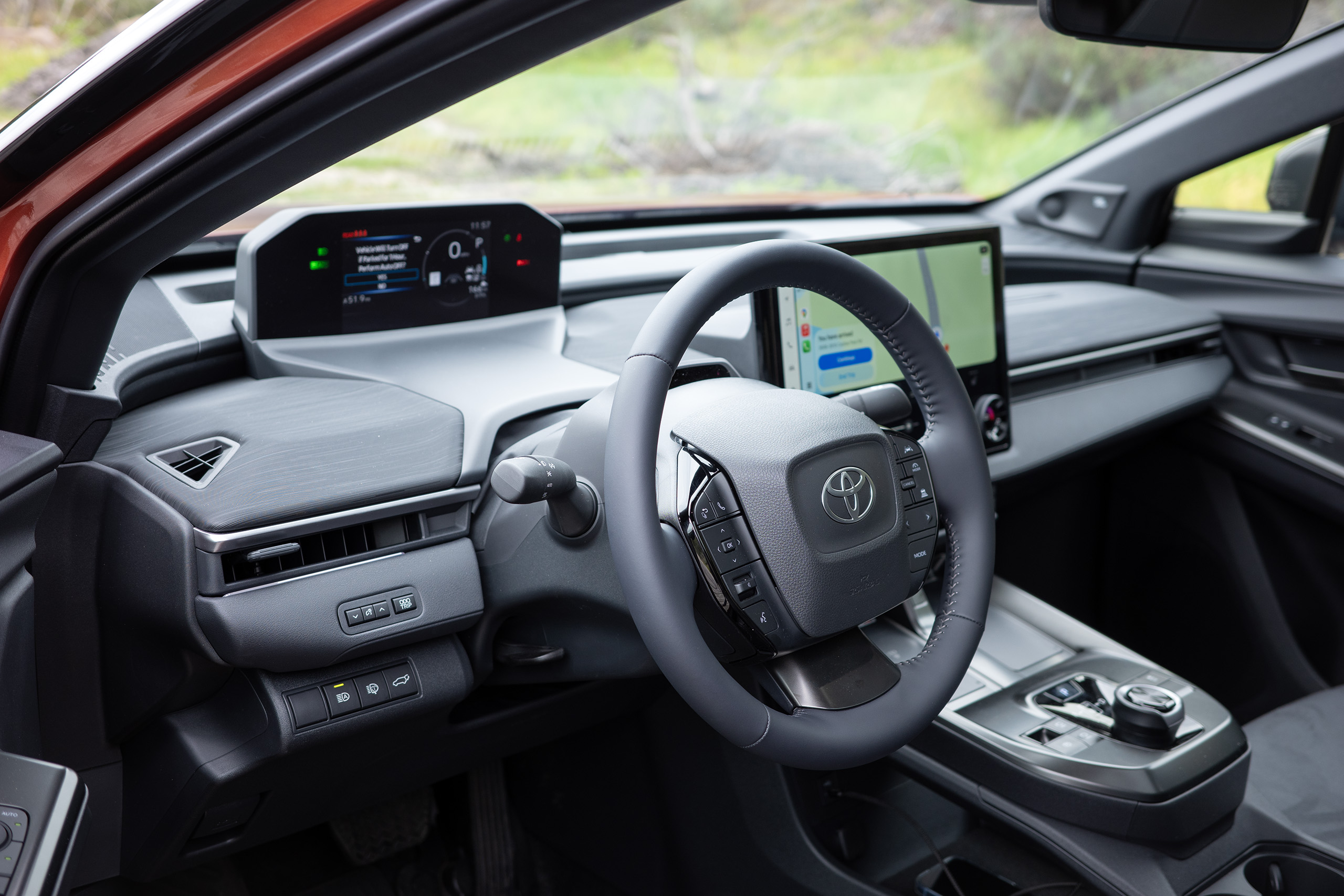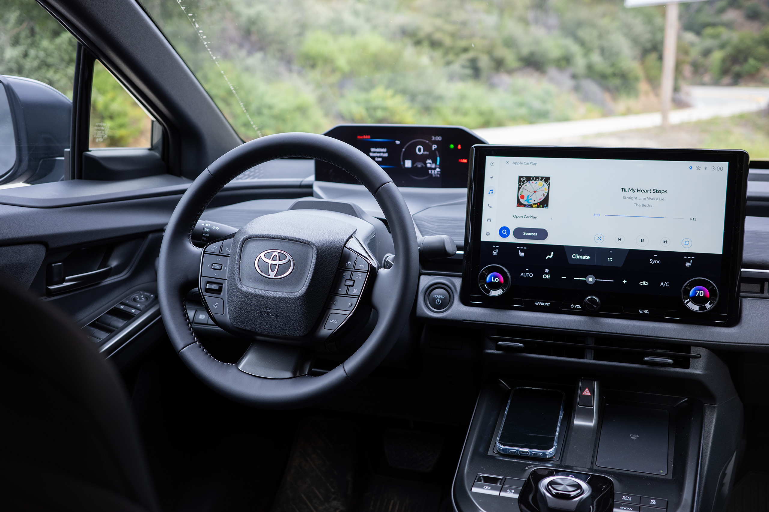 That sentiment sums up the entire exterior. Toyota smoothed out some of the launch bZ4X’s quirks, which was the right call, but there are attractive details here that command attention, like the rear light bar that juts out and stands apart from the tailgate. Optioned with the big 20-inch wheels, as the XSE trim has, coupled with the short wheelbase, it almost looks like a concept car. Passersby in Southern California seemed to like it.