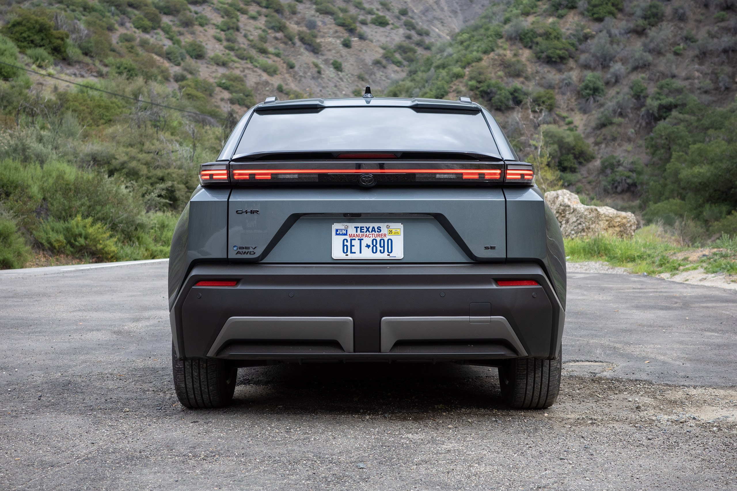 The damping is also harsher than the bZ’s, but make no mistake, the ride’s still soft and generally comfortable, and this thing unapologetically rolls in the bends. Hustling up the twisty Route 33 in California’s Ojai Valley, the C-HR felt responsive, but the lateral pitching at speed, coupled with a 4,300-pound curb weight, discourages you from carrying a dumb pace into corners. Again, I think anyone hoping for an enjoyable commuter will like what they find here, but those pining for a Toyota EV that is dynamically deft had better wait for a GR version. For what it’s worth, I reckon the GR spec of this thing would be a hoot.