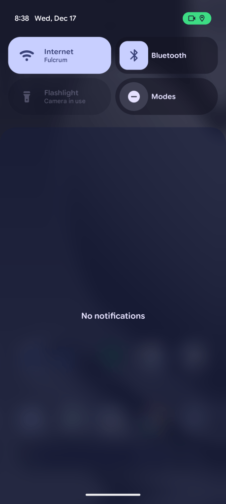 Back in 2021’s Android 12 release, Google added a new green dot to prominently notify the user that an app was using the camera or microphone on your device. The dot shows next to your battery icon and, in the notification shade, can be tapped to show which apps have accessed those permissions.