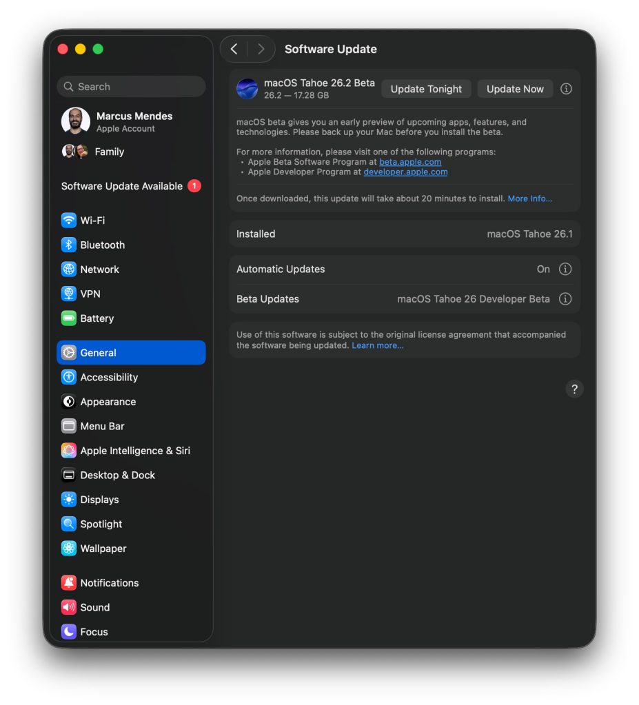 Here’s how to install the macOS Tahoe 26.2 developer beta 1: