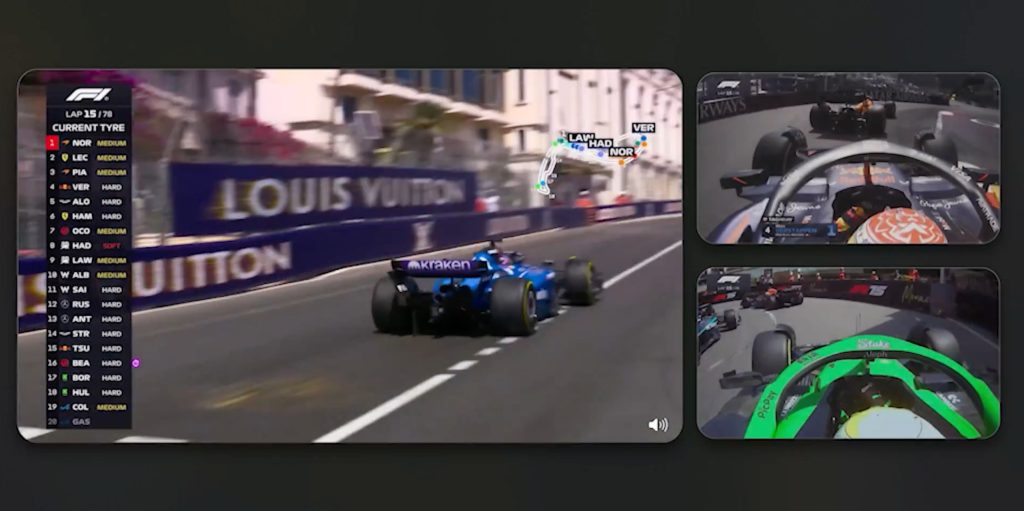From the newly-released screenshots, we can also see that the platform will include streaming onboard driver cams with support for Multiview to show several perspectives at once during a race. (Assuming device compatibility remains the same, Multiview is supported on Apple TV set-top boxes, iPad and Apple Vision Pro.)