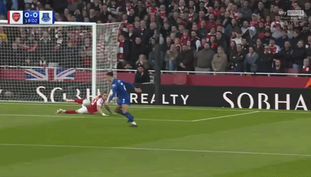It was part of a spell when Everton had three chances in quick succession to give Arsenal a serious fright. They were dangerous when they sprang, and David Raya needed to be agile and composed.