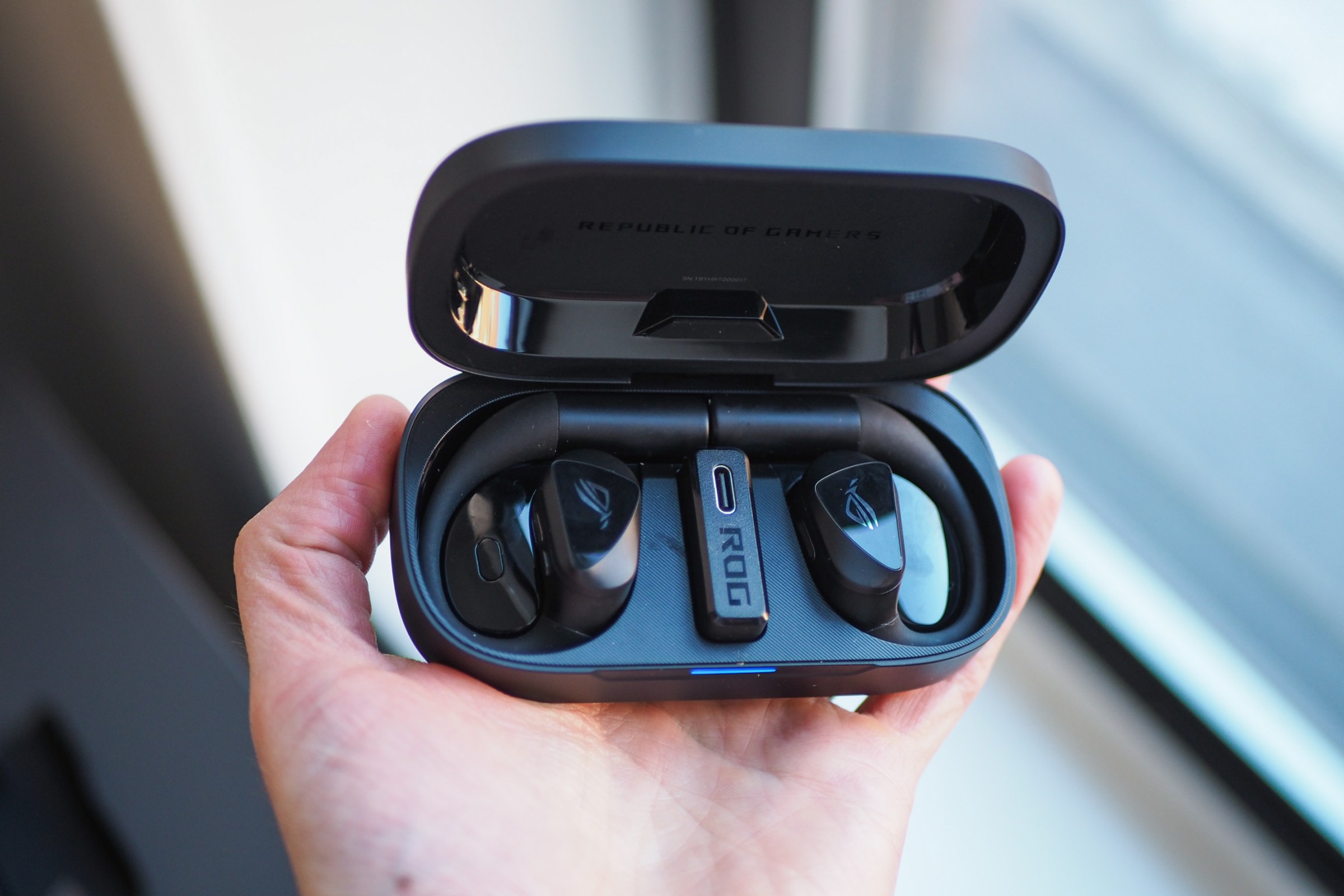 The hefty case charges via USB-C (it lacks wireless charging) and can charge the earbuds multiple times before running out of power. Asus claims the buds can last up to 16 hours per charge in Bluetooth mode with the RGB LEDs and mics off (fewer in 2.4GHz mode, which yields about 10 hours per charge in my testing). I’ve only had to charge the case twice while testing, and the buds themselves charge very quickly. I was able to take them from 70 percent capacity to fully charged in less than 20 minutes.