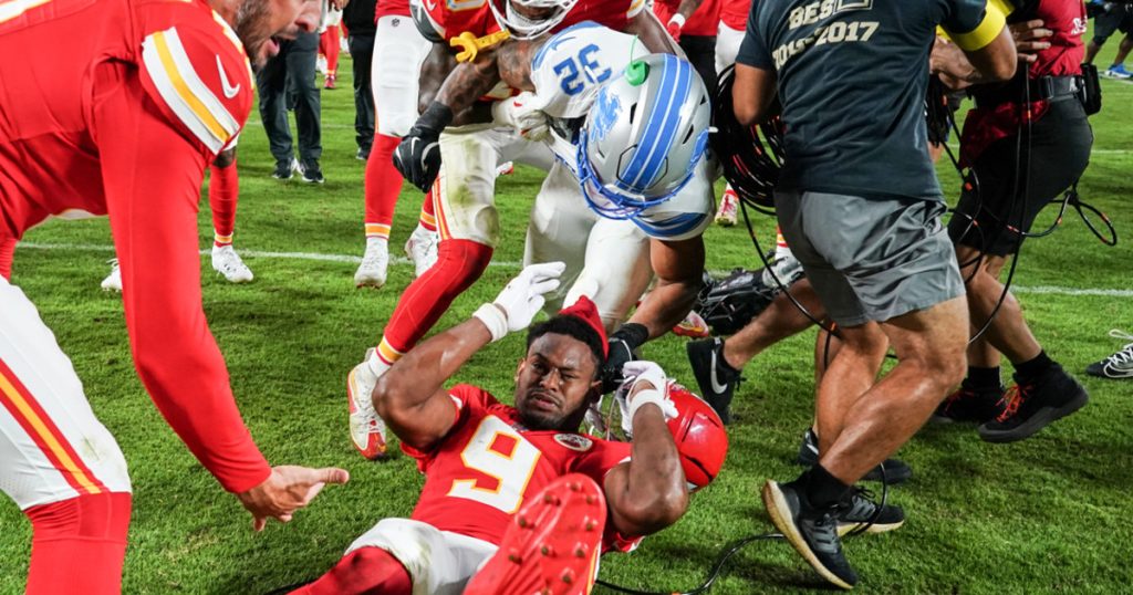 KANSAS CITY, Mo. — A long, frustrating night for the Detroit Lions inside Arrowhead Stadium ended with Brian Branch delivering
