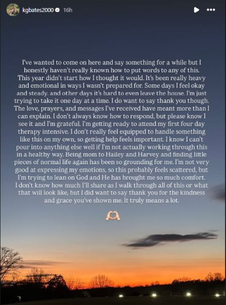 “I’ve wanted to come on here and say something for a while but I honestly haven’t really known how to put words to any of this,” she wrote on Instagram Stories. “This year didn’t start how I thought it would. It’s been really heavy and emotional in ways I wasn’t prepared for. Some days I feel okay and steady, and other days it’s hard to even leave the house. I’m just trying to take it one day at a time.”