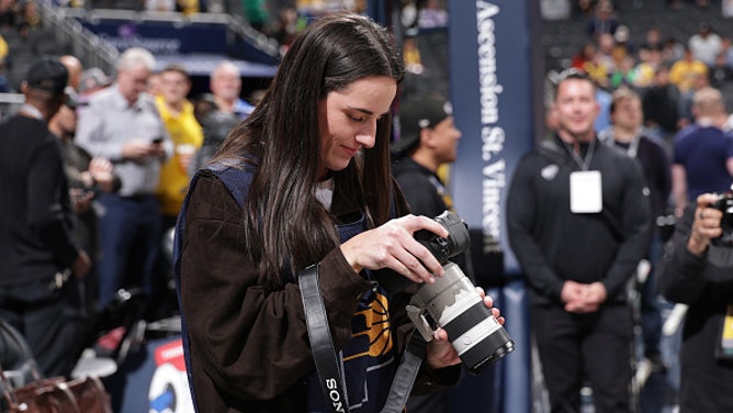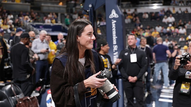 Photos from the night showed Clark snapping pictures during pregame festivities and then settling in on the baseline with a long camera lens, putting her expert court vision to use, looking for the shot of the night.
