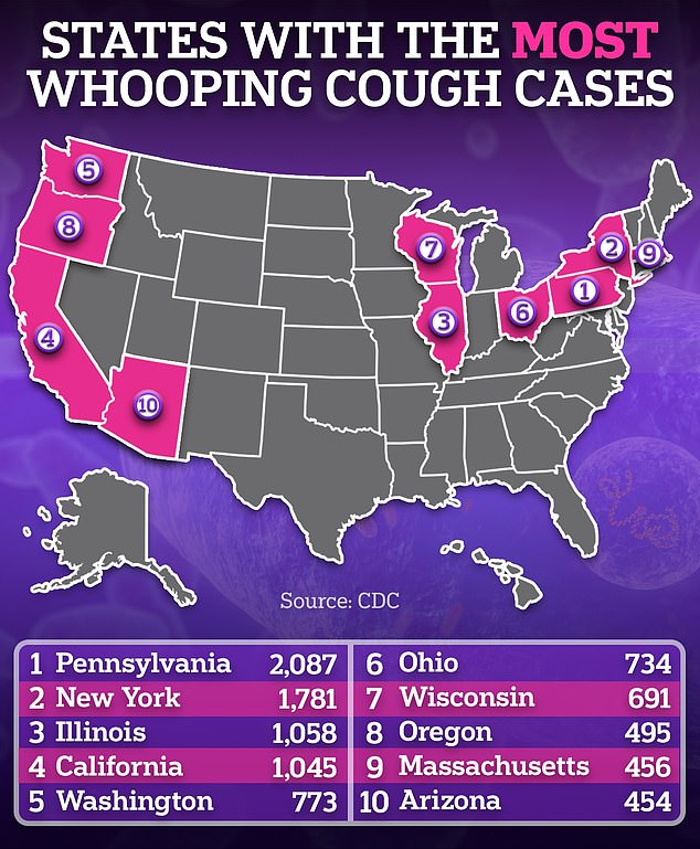 Dr Marcos Mestre, chief clinical operations officer at Nicklaus Children’s Health System in Miami, told CBS last year: ‘We have been seeing some increase in pertussis cases that are coming through our emergency departments.