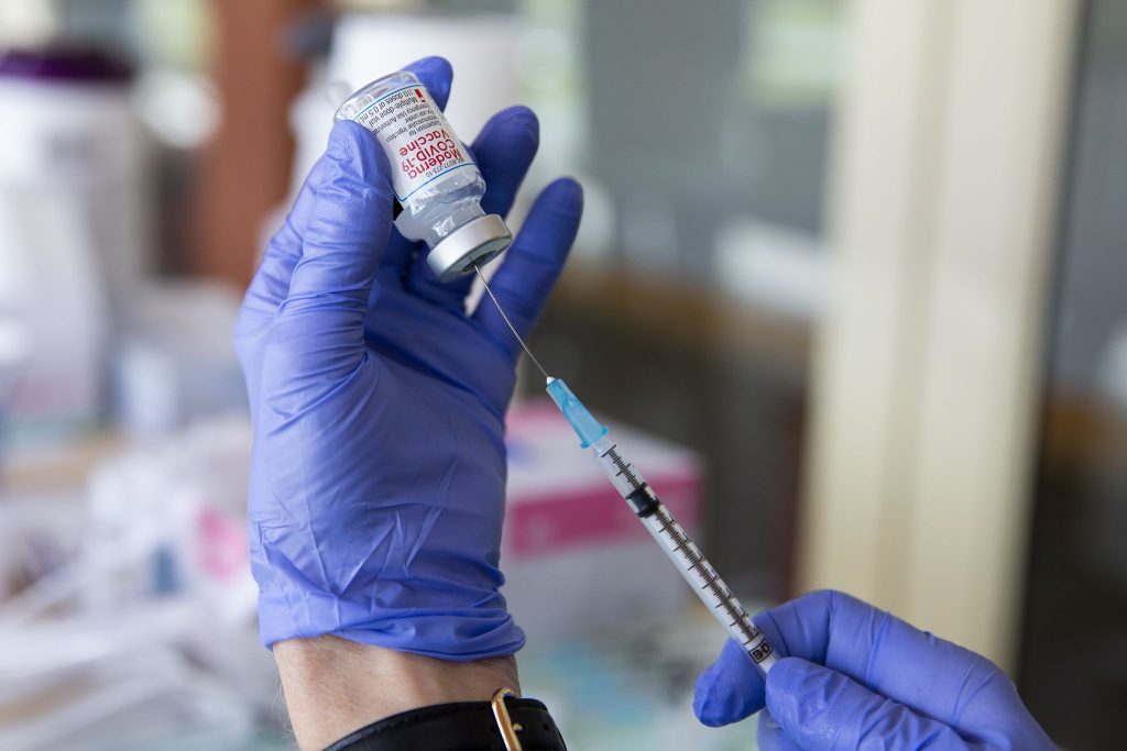A nurse draws up doses of the Moderna COVID-19 for a vaccination clinic in St. Helena in 2021. Moderna is offering