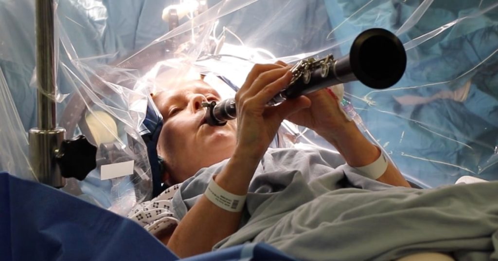 LONDON — Music met medicine when a patient played a clarinet solo as she underwent brain surgery for Parkinson’s disease