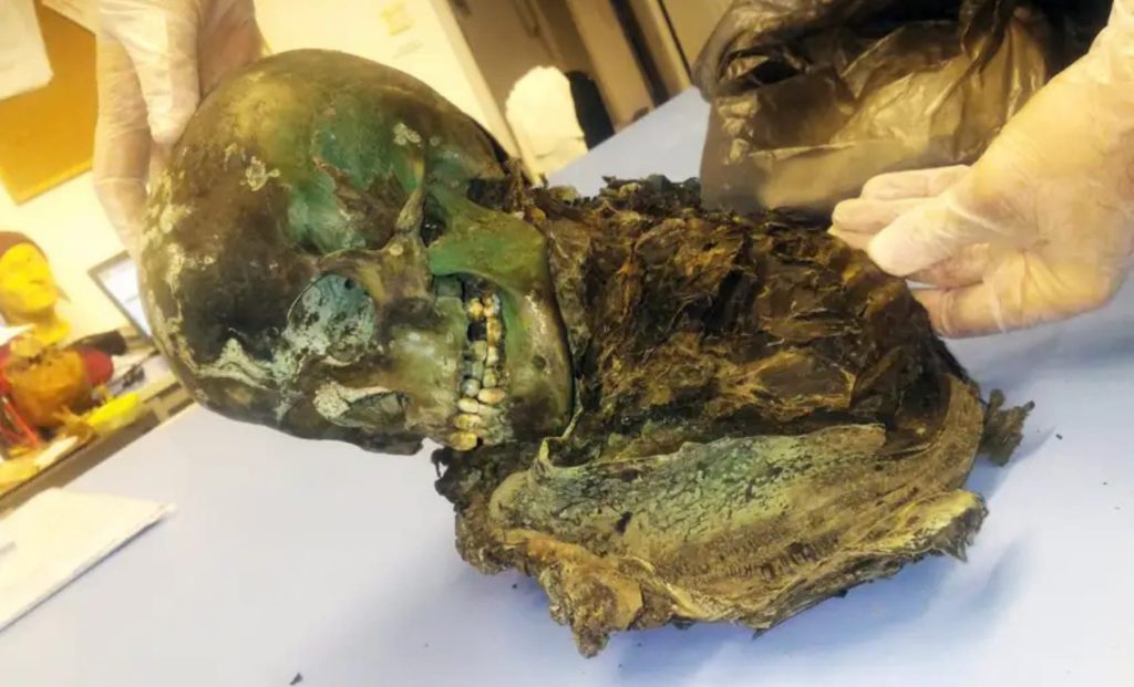 The child, radiocarbon-dated to between 1617 and 1814, was laid to rest in a sealed copper coffin beneath an ancient