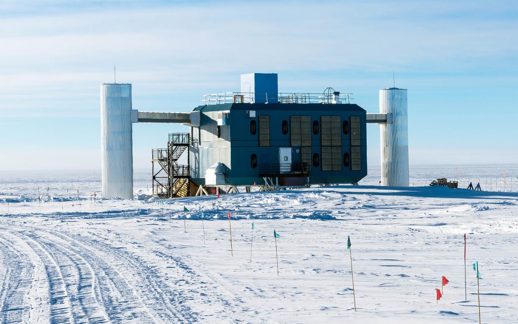 High above the ice at the South Pole, a detector the size of a city block listens for some of