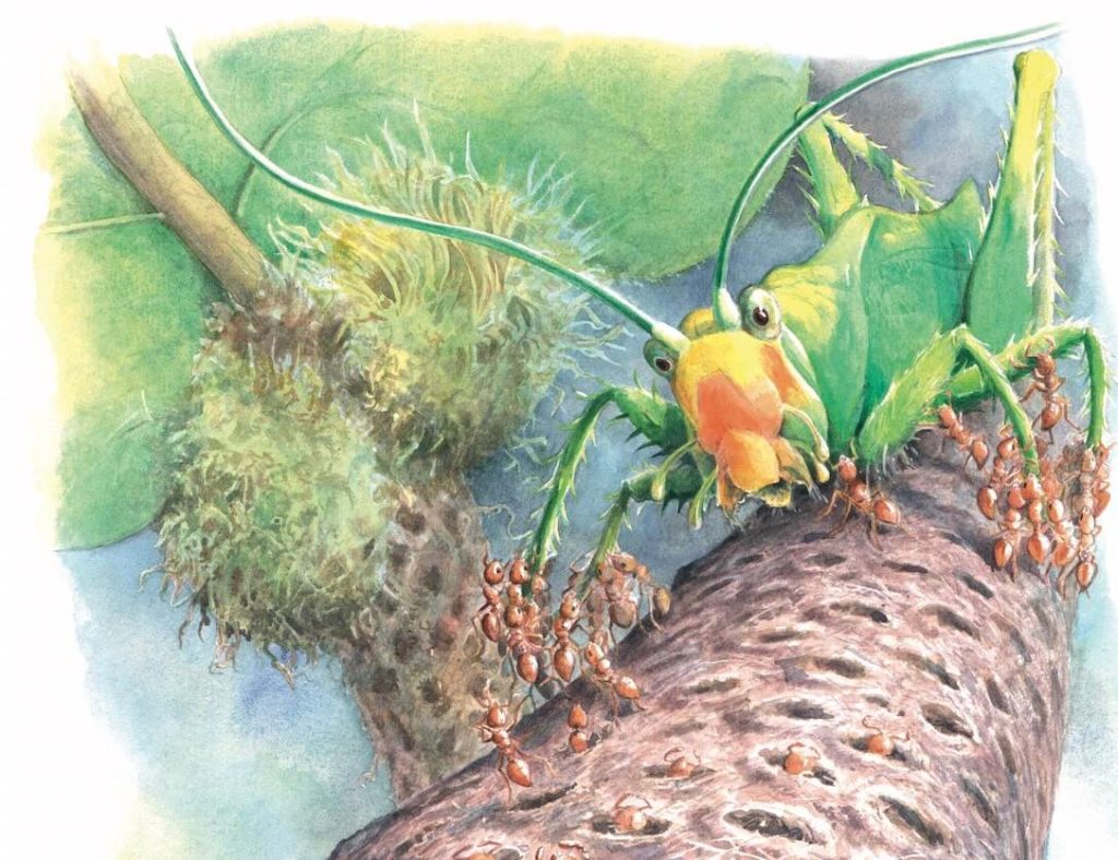 Somewhere in the Amazonian understorey, beneath a great forest canopy, a cricket leaps on to the stem of a shrub.