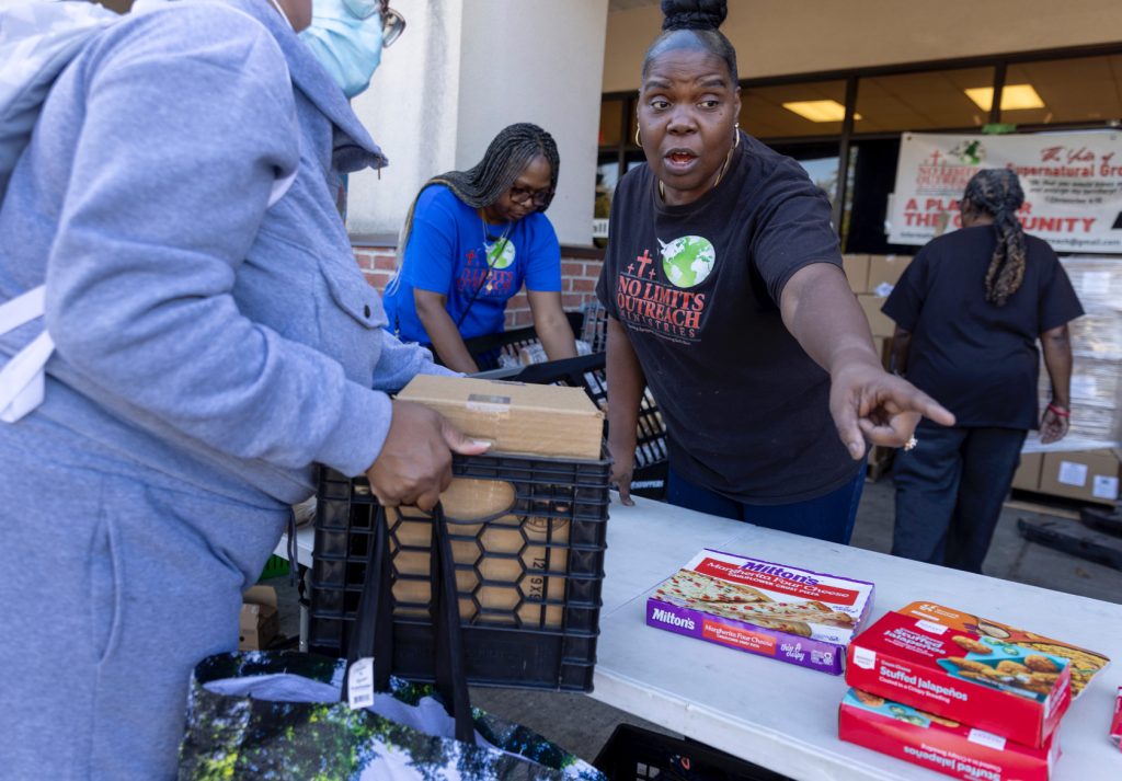In Maryland, a spike in need is sending federal workers to food distribution sites WAMU Federal workers form line down the