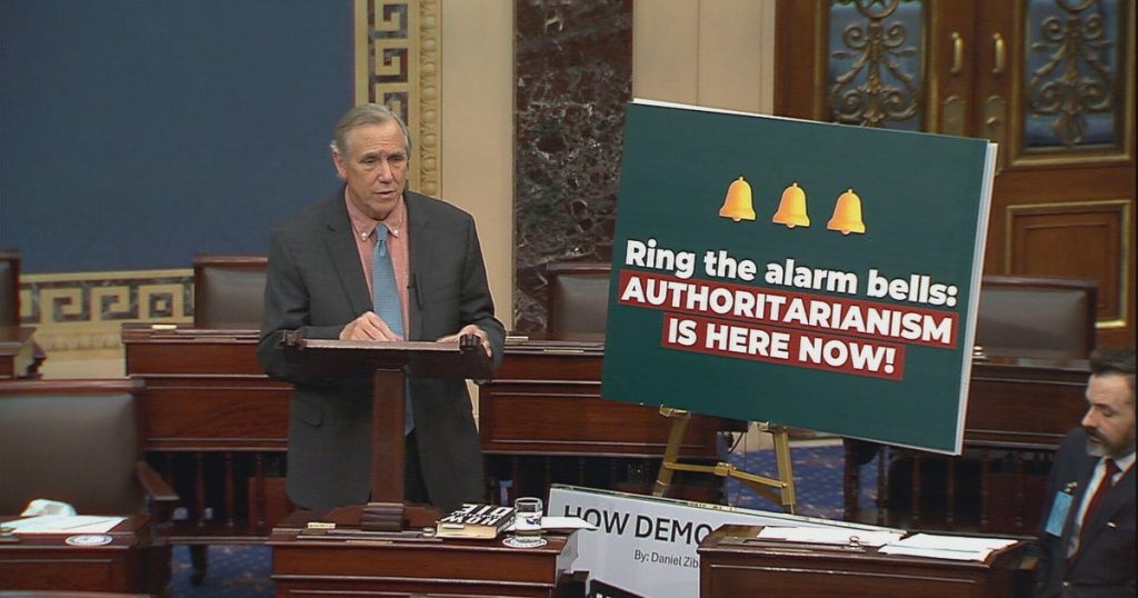 Washington — Sen. Jeff Merkley, an Oregon Democrat, began delivering a marathon speech on the Senate floor Tuesday evening, speaking