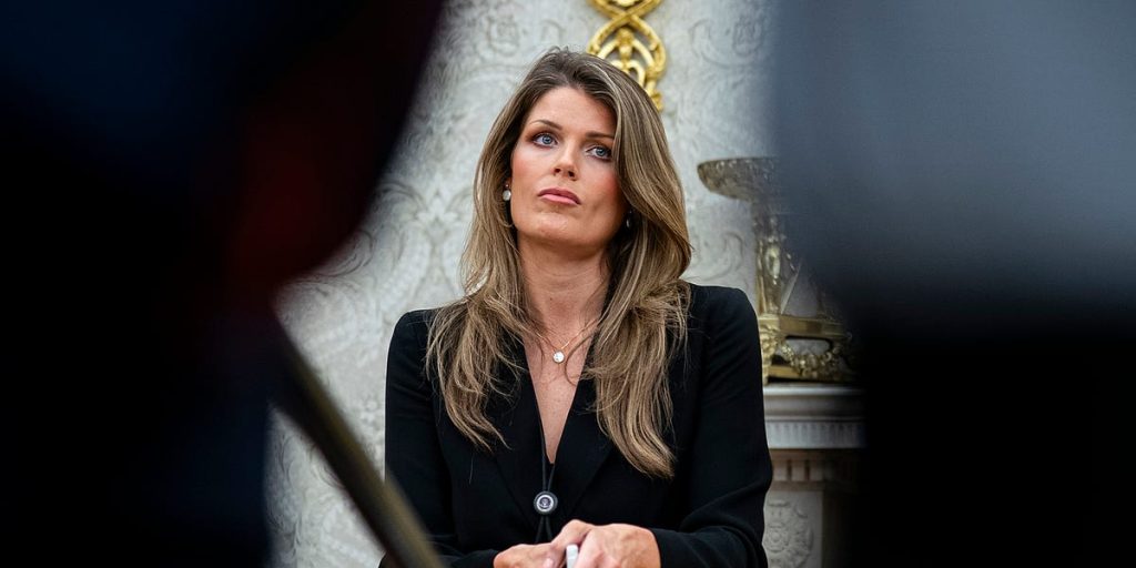 Lindsey Halligan in the Oval Office of the White House on March 31, 2025. Photo by Al Drago/Getty Images Donald
