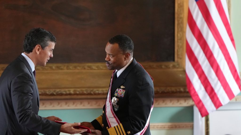 Paraguay’s President Santiago Peña awards the Order of Merit “Gral Div Bernardino Caballero” in the grade of “Gran Cross”, to