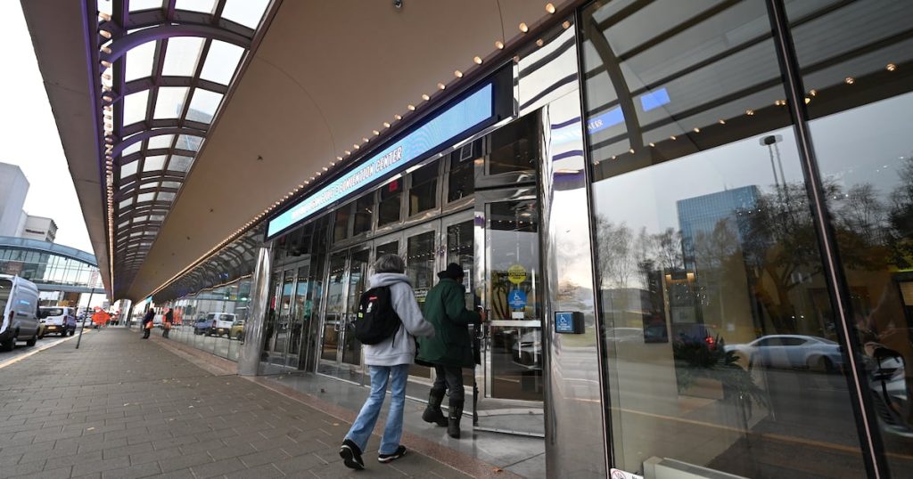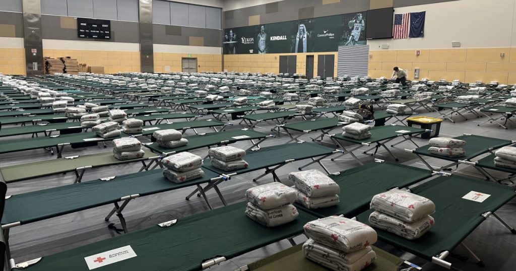 The Egan Center in downtown is one of four shelters in Anchorage being used to house evacuees after being displaced