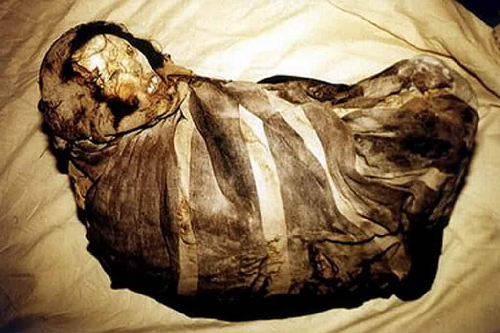 Three of the children were found on Ampato, a dormant 6,288-metre (20,630 ft) stratovolcano in the Andes of southern Peru. Archaeologists believe the human sacrifices may have been done to “calm” a nearby volcano. The fourth child came from a shrine near the Sara Sara volcano, about 160 kilometers (100 miles) away.
