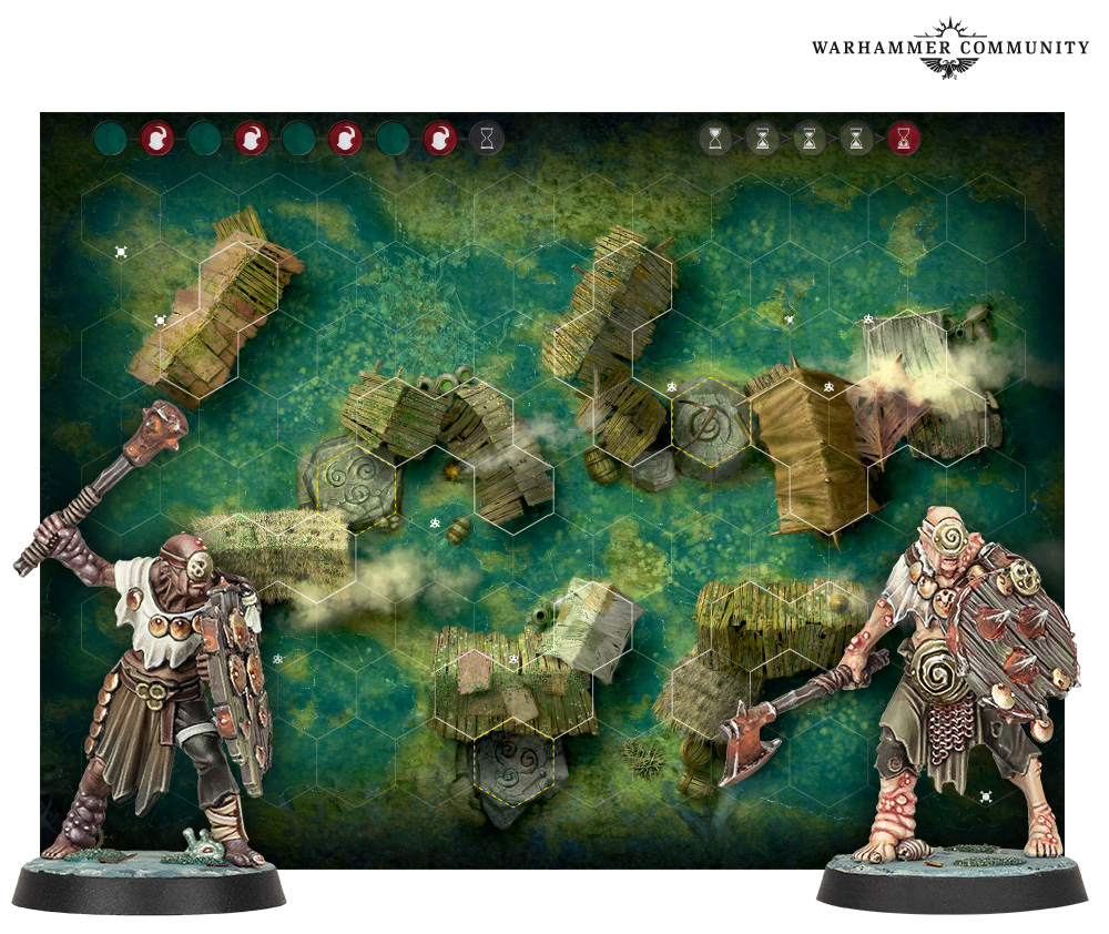Back to our Cleanse the Spawn Pit encounter: winning is simple, all you have to do is get a hero into the hex denoted by a spiral glyph, but heroes cannot enter that hex if there are any nests left on the battlefield. You’ll need to wade through the muck and put these nests to the torch while dealing with endless waves of Mire Kelpies – no matter how many you squish, they just keep coming.