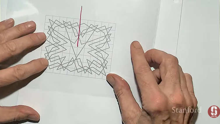 There’s a beauty to math, and Knuth delightedly showed solutions filled with straight-line angles, or with intricate symmetrical wedge patterns.