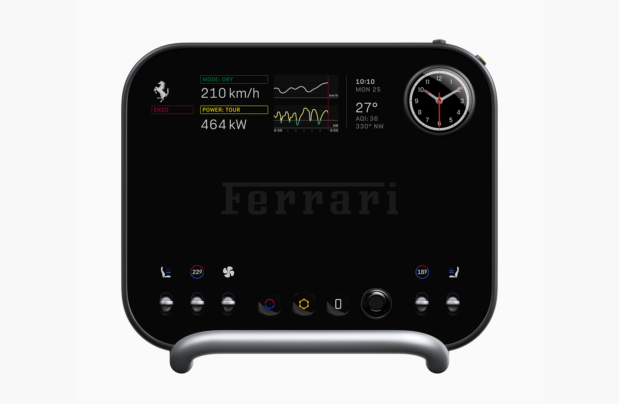 The preponderance of rounded rectangles and aluminum bezels does make it tempting to call it the Apple Ferrari, though since the Apple designs it calls to were all Ive’s anyway, it’d more accurate to call it the Ive Ferrari. I digress. The design work done inside an automaker is iterative and evolutionary by nature; even revolutionary new models are drawing from an established body of work in structured ways. Regardless of how you judge the result of two legendary tech designers taking their first crack at a car, I think you’ll agree that Ferrari (or any company) couldn’t have come up with something like this by itself.