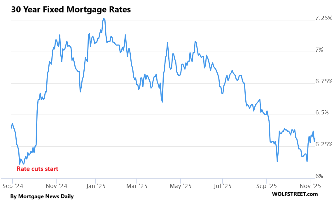 The 30-year Treasury yield rose to 4.70%. It was 4.55% just before the October rate cut, and 3.94% before the rate cut in September 2024.