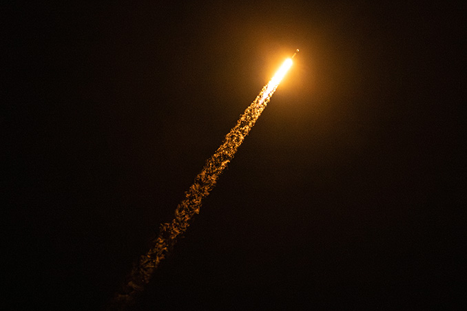 The Starlink 6-78 mission, carrying 29 satellites for SpaceX’s internet service, soared spaceward at 10:39 p.m. EST (0339 UTC), the Faclon 9 rocket rising from a fog bank that had blanketed the area around launch complex 39A.
