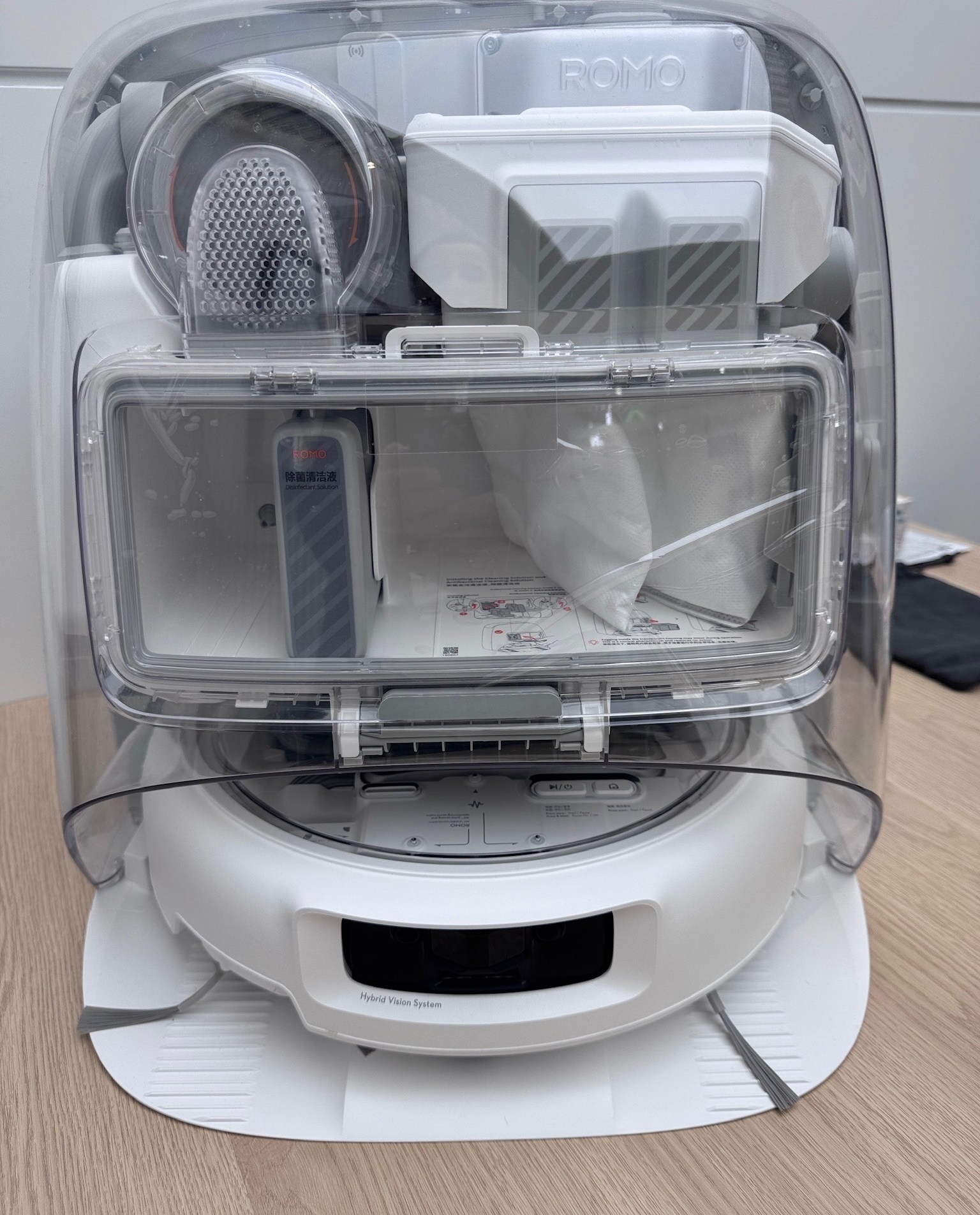 That said, this is a very expensive vacuum for its specs — and seeing inside your vacuum has been done already (thanks, Dyson). Aside from navigation (more on that in a bit), the Romo line is very similar to Roborock’s less expensive Qrevo Curv series. The curved base stations have a similar design, and the bots have the same split roller brush that funnels hair into the center to be sucked away, along with an extendable side brush for reaching into corners.