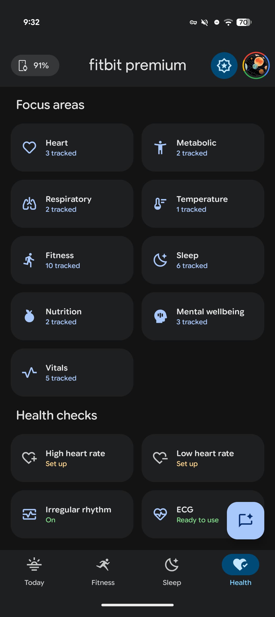 Back on the grid, there’s also “Mental wellbeing” where you’ll find Mindfulness and Body responses. Fitbit says “Data logged in the standard version of the app may be delayed in showing up in Preview.”