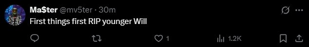 ‘First things first RIP younger Will,’ a fan wrote, referencing to his role in The Fresh Prince Of Bel-Air.
