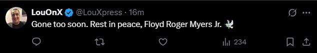 One penned, ‘I’m devastated. What happened?’ and another said, ‘Gone too soon. Rest in peace, Floyd Roger Myers Jr.’