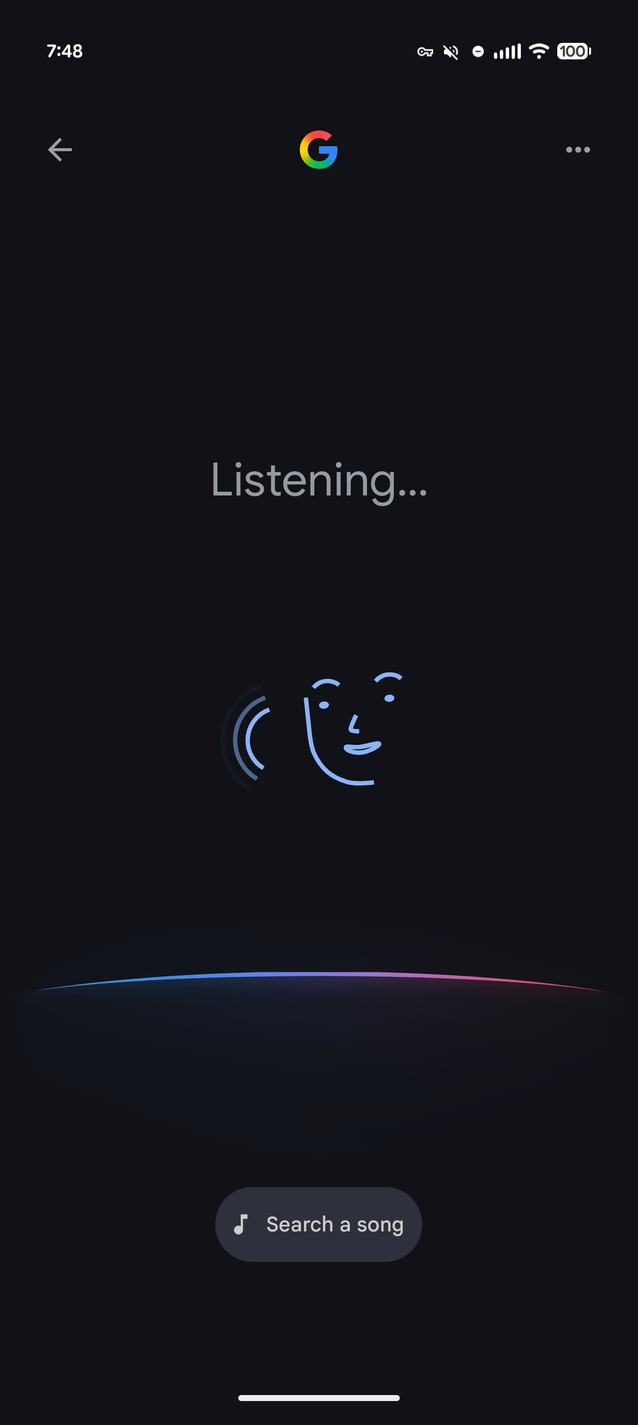 The prompt notes that Google is “Listening…” with the same face illustration as before. At the bottom, you’ll find a four-color arc that is straight out of AI Mode and Search Live, while your query is transcribed above it.