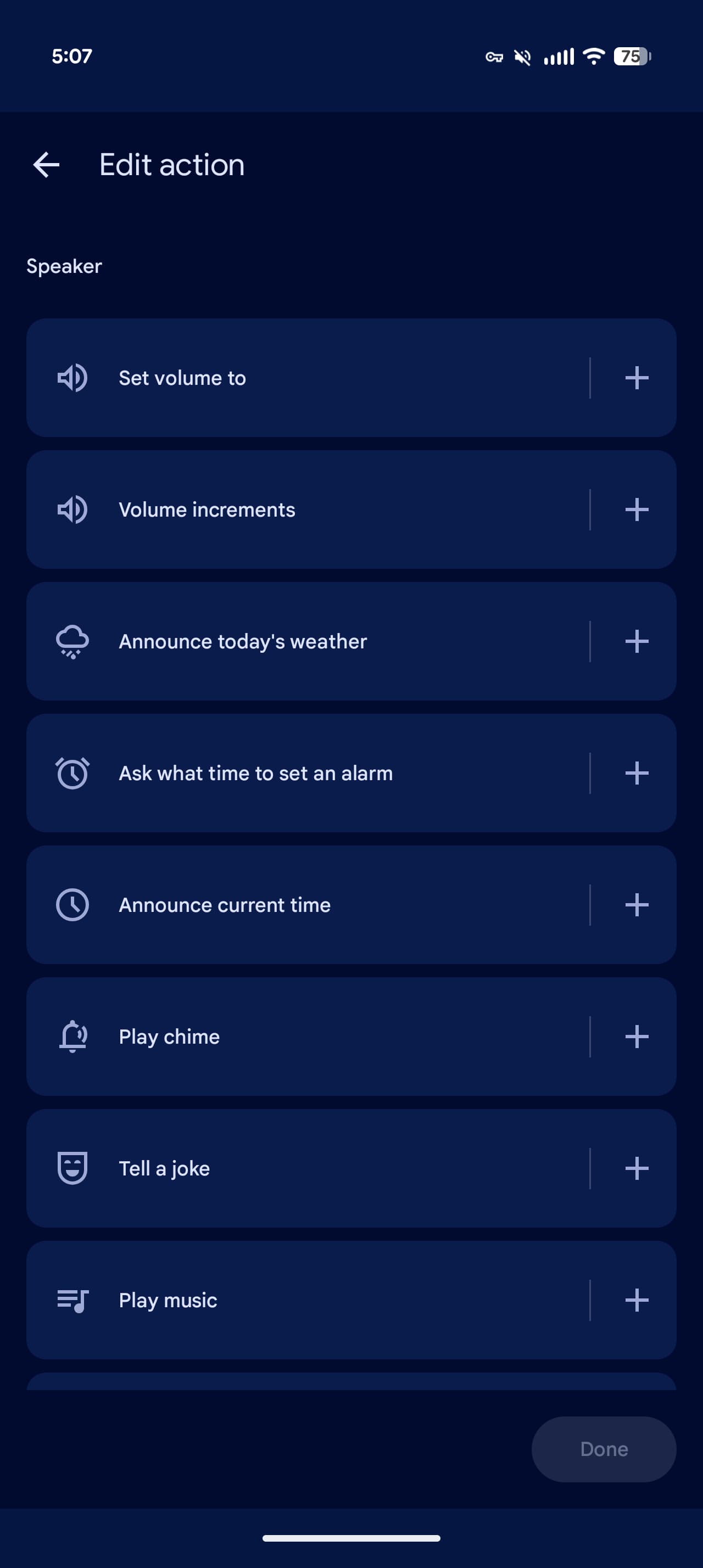 Up first are “Pre-defined voice assistant actions” in the Google Home app’s automation editor under the Devices action type on smart speakers and displays: