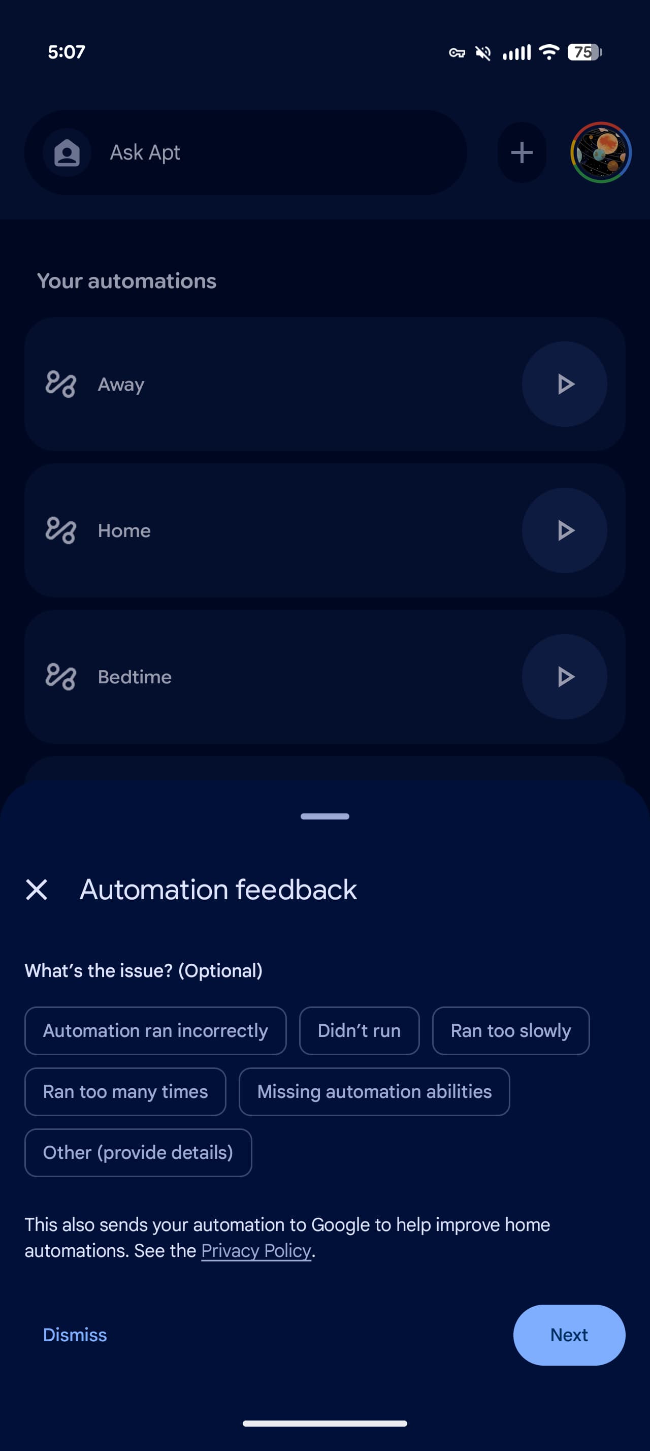 The last related update lets you “tap and hold a specific automation from your automation tab to bring up the feedback menu.” The list lets you select “issues you encountered with your automation and provide additional information about your issue.” This new automation feedback method is rolling out.