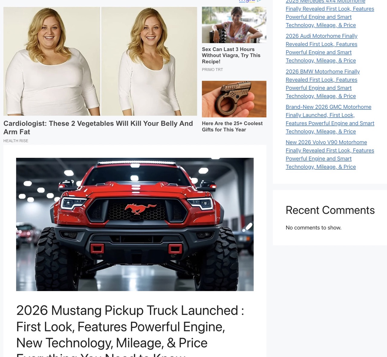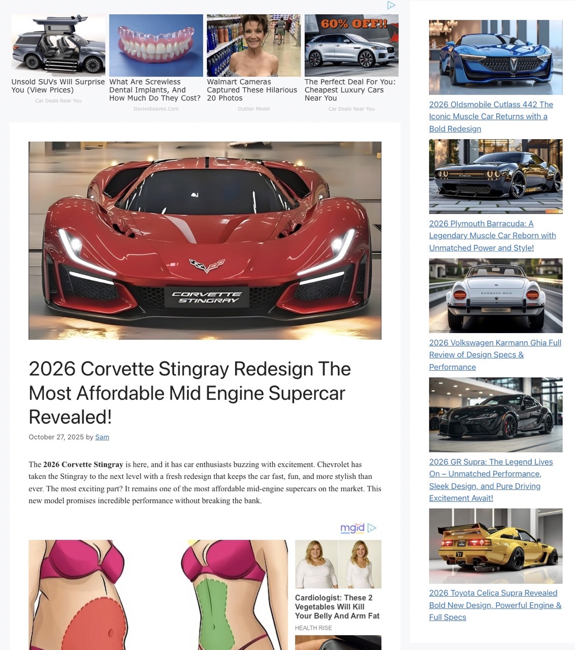 I can’t even link to the sites that are being promoted because I don’t want to be associated with them, but it’s really bad, and little of the content there seems true, trustworthy, or written by or for humans. There is no Mustang Pickup truck coming, nor a 2026 Chevelle SS, and the new Corvette doesn’t look like this.