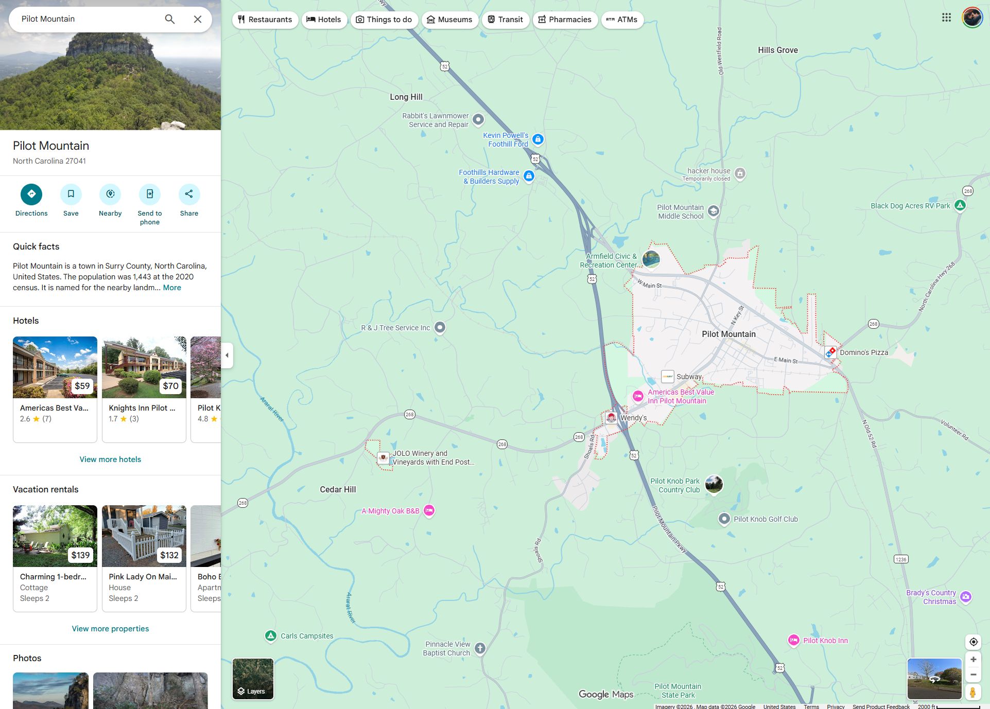 Looking at a State Park in NC, the signed-in version of Maps shows nearby hotels, rentals, and user photos, as well as some facts about the area. The signed-out version shows almost none of this, and even removes a bunch of nearby businesses and attractions from the map itself.
