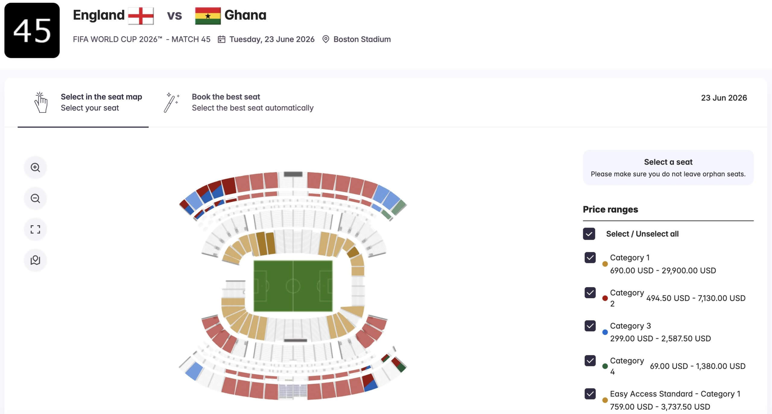 And fans suspect that’s part of why standard ticket availability for England’s match there against Ghana looks like this…