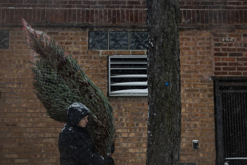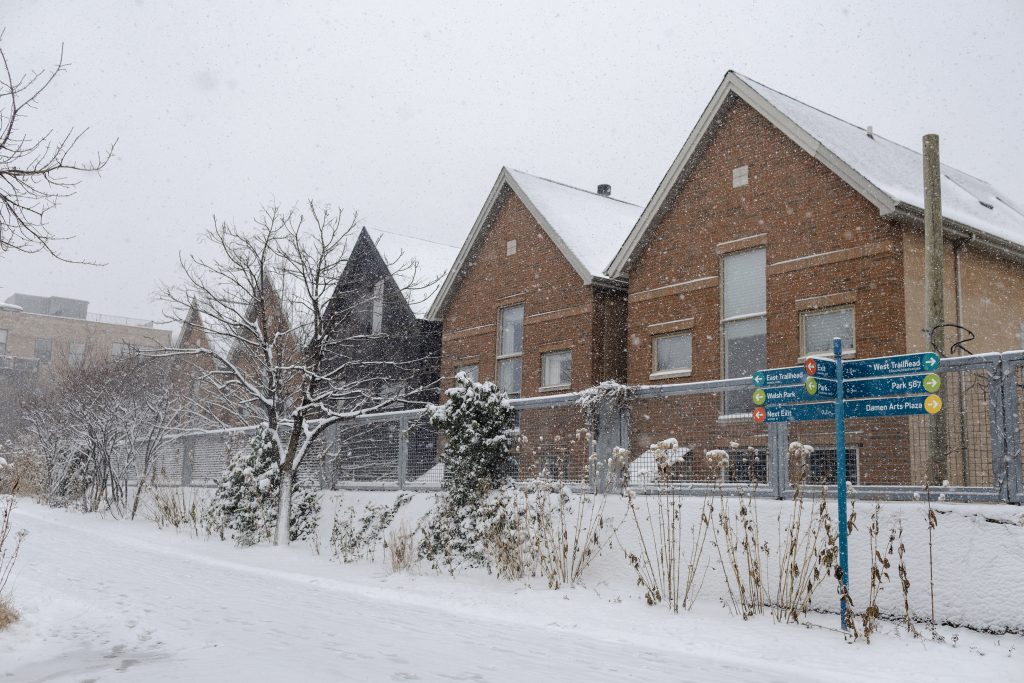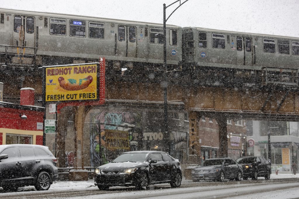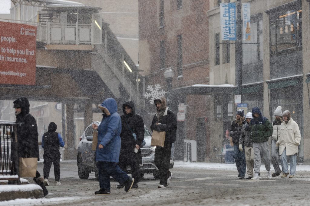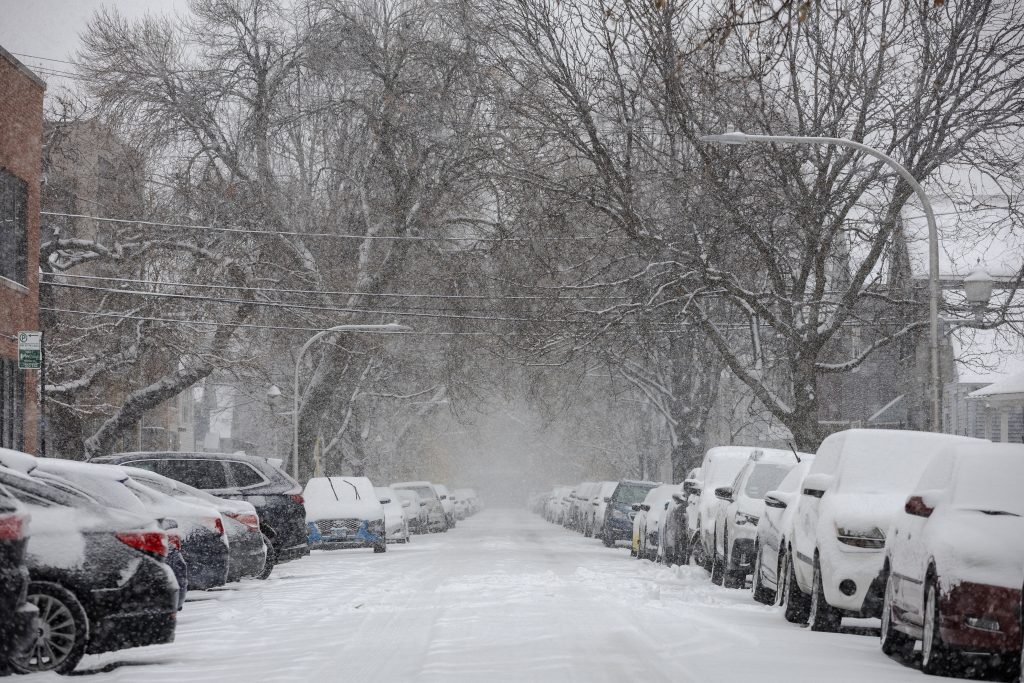 People run down the 606 trail during a snowstorm on Saturday, Nov. 29, 2025. Credit: Jim Vondruska for Block Club ChicagoPeople with umbrellas walk through Logan Square during a snowstorm on Saturday, Nov. 29, 2025. Credit: Jim Vondruska for Block Club ChicagoA person rides an electric scooter during a snowstorm on Saturday, Nov. 29, 2025. Credit: Jim Vondruska for Block Club ChicagoA Blue Line train passes Red Hot Ranch in Logan Square during a snowstorm on Saturday, Nov. 29, 2025. Credit: Jim Vondruska for Block Club ChicagoPedestrians cross the street during a snowstorm on Saturday, Nov. 29, 2025. Credit: Jim Vondruska for Block Club ChicagoA snowplow sits parked on the street during a snowstorm on Saturday, Nov. 29, 2025. Credit: Jim Vondruska for Block Club ChicagoA man uses a snowplow to clear a sidewalk during a snowstorm on Saturday, Nov. 29, 2025. Credit: Jim Vondruska for Block Club ChicagoThe Logan Square monument during a snowstorm on Saturday, Nov. 29, 2025. Credit: Jim Vondruska for Block Club ChicagoA woman cleans snow off of her car with a broom during a snowstorm in Logan Square on Saturday, Nov. 29, 2025. Credit: Jim Vondruska for Block Club ChicagoAirplanes taxi on a runway at O’hare International Airport on Saturday, Nov. 29, 2025. Credit: Jim Vondruska for Block Club ChiA man walks two dogs at Horner Park on Sunday, Nov. 30, 2025. Credit: Jim Vondruska for Block Club ChiA snowplow passes through an intersection during a snowstorm on Saturday, Nov. 29, 2025. Credit: Jim Vondruska for Block Club ChicagoTravelers wait in a security line in Terminal 1 at O’Hare International Airport on Sunday, Nov. 30, 2025. Credit: Jim Vondruska for Block Club ChiSnow covered cars sit on a side street during a snowstorm on Saturday, Nov. 29, 2025. Credit: Jim Vondruska for Block Club ChicagoTravelers make their way through Terminal 1 at O’Hare International Airport on Sunday, Nov. 30, 2025. Credit: Jim Vondruska for Block Club ChiSeveral dogs play at Horner Park on Sunday, Nov. 30, 2025. Credit: Jim Vondruska for Block Club ChiA person rides an electric scooter on the street during a snowstorm on Saturday, Nov. 29, 2025. Credit: Jim Vondruska for Block Club ChicagoExterior of a salt depot during a snowstorm on Saturday, Nov. 29, 2025. Credit: Jim Vondruska for Block Club ChicagoPeople run down the 606 trail during a snowstorm on Saturday, Nov. 29, 2025. Credit: Jim Vondruska for Block Club ChicagoA man carries a Christmas tree during a snowstorm on Saturday, Nov. 29, 2025. Credit: Jim Vondruska for Block Club ChicagoSnow covered homes sit next to the 606 trail during a snowstorm on Saturday, Nov. 29, 2025. Credit: Jim Vondruska for Block Club Chicago