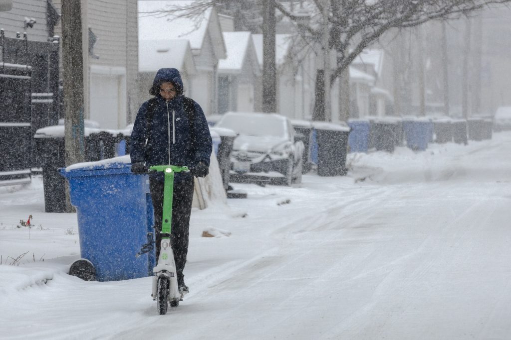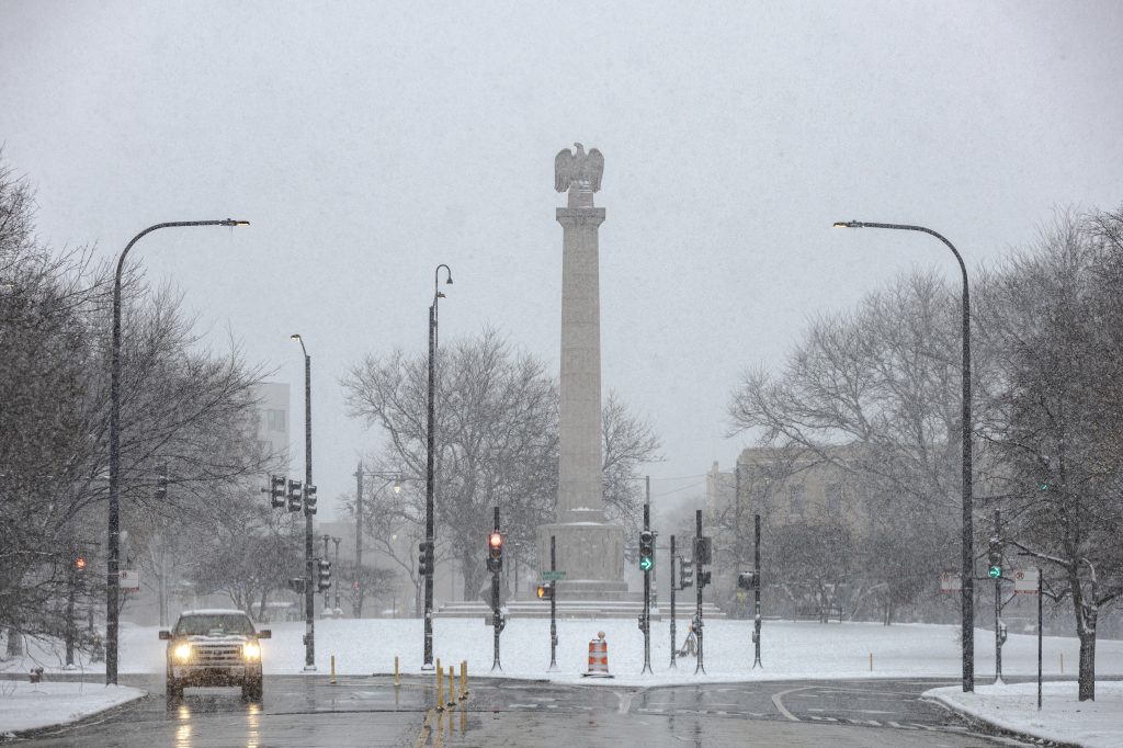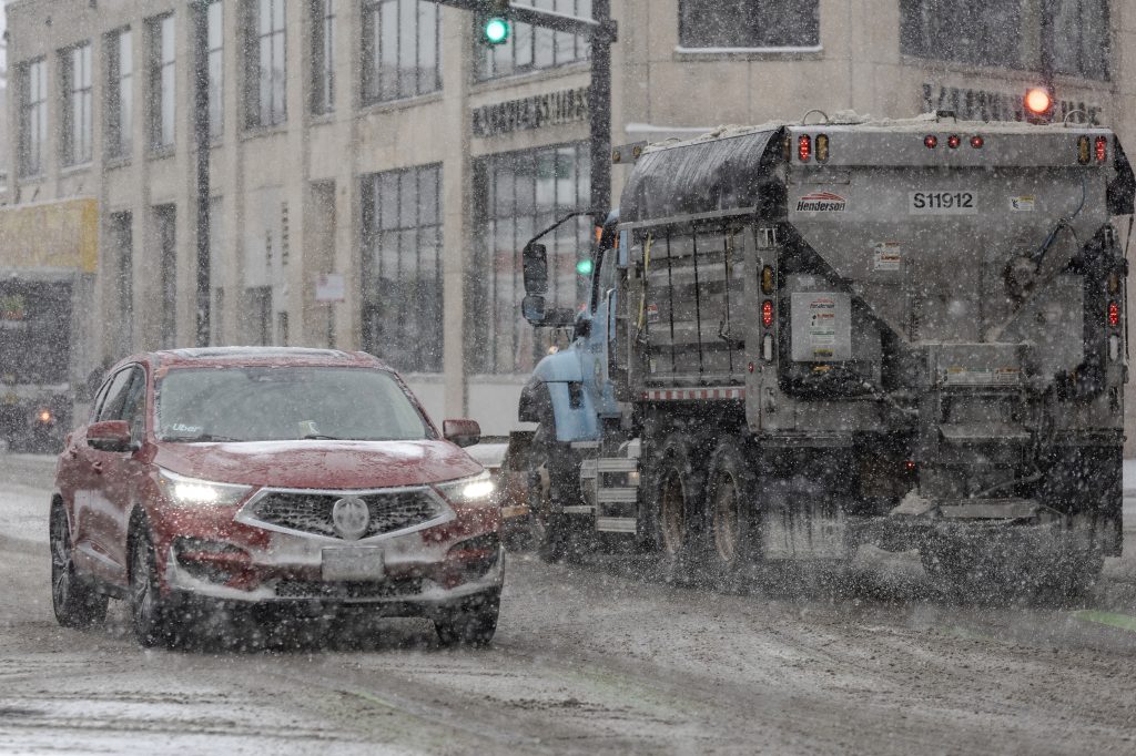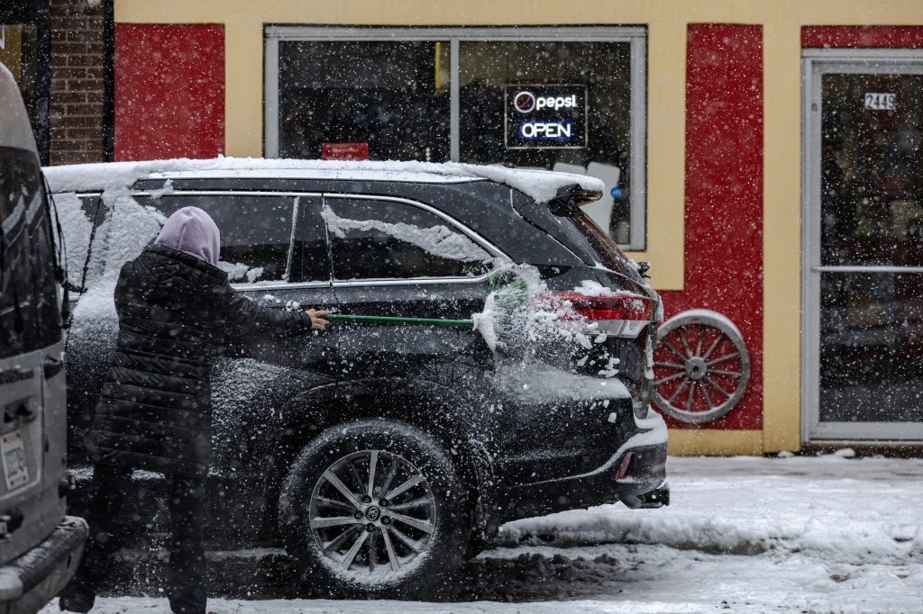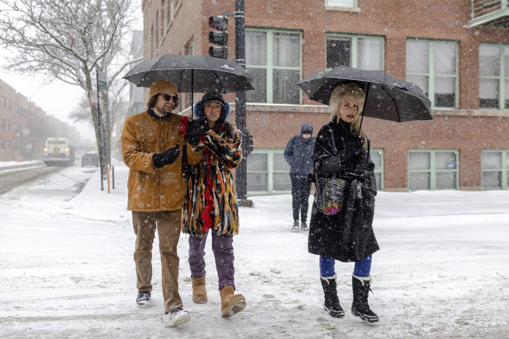 People run down the 606 trail during a snowstorm on Saturday, Nov. 29, 2025. Credit: Jim Vondruska for Block Club ChicagoPeople with umbrellas walk through Logan Square during a snowstorm on Saturday, Nov. 29, 2025. Credit: Jim Vondruska for Block Club ChicagoA person rides an electric scooter during a snowstorm on Saturday, Nov. 29, 2025. Credit: Jim Vondruska for Block Club ChicagoA Blue Line train passes Red Hot Ranch in Logan Square during a snowstorm on Saturday, Nov. 29, 2025. Credit: Jim Vondruska for Block Club ChicagoPedestrians cross the street during a snowstorm on Saturday, Nov. 29, 2025. Credit: Jim Vondruska for Block Club ChicagoA snowplow sits parked on the street during a snowstorm on Saturday, Nov. 29, 2025. Credit: Jim Vondruska for Block Club ChicagoA man uses a snowplow to clear a sidewalk during a snowstorm on Saturday, Nov. 29, 2025. Credit: Jim Vondruska for Block Club ChicagoThe Logan Square monument during a snowstorm on Saturday, Nov. 29, 2025. Credit: Jim Vondruska for Block Club ChicagoA woman cleans snow off of her car with a broom during a snowstorm in Logan Square on Saturday, Nov. 29, 2025. Credit: Jim Vondruska for Block Club ChicagoAirplanes taxi on a runway at O’hare International Airport on Saturday, Nov. 29, 2025. Credit: Jim Vondruska for Block Club ChiA man walks two dogs at Horner Park on Sunday, Nov. 30, 2025. Credit: Jim Vondruska for Block Club ChiA snowplow passes through an intersection during a snowstorm on Saturday, Nov. 29, 2025. Credit: Jim Vondruska for Block Club ChicagoTravelers wait in a security line in Terminal 1 at O’Hare International Airport on Sunday, Nov. 30, 2025. Credit: Jim Vondruska for Block Club ChiSnow covered cars sit on a side street during a snowstorm on Saturday, Nov. 29, 2025. Credit: Jim Vondruska for Block Club ChicagoTravelers make their way through Terminal 1 at O’Hare International Airport on Sunday, Nov. 30, 2025. Credit: Jim Vondruska for Block Club ChiSeveral dogs play at Horner Park on Sunday, Nov. 30, 2025. Credit: Jim Vondruska for Block Club ChiA person rides an electric scooter on the street during a snowstorm on Saturday, Nov. 29, 2025. Credit: Jim Vondruska for Block Club ChicagoExterior of a salt depot during a snowstorm on Saturday, Nov. 29, 2025. Credit: Jim Vondruska for Block Club ChicagoPeople run down the 606 trail during a snowstorm on Saturday, Nov. 29, 2025. Credit: Jim Vondruska for Block Club ChicagoA man carries a Christmas tree during a snowstorm on Saturday, Nov. 29, 2025. Credit: Jim Vondruska for Block Club ChicagoSnow covered homes sit next to the 606 trail during a snowstorm on Saturday, Nov. 29, 2025. Credit: Jim Vondruska for Block Club Chicago