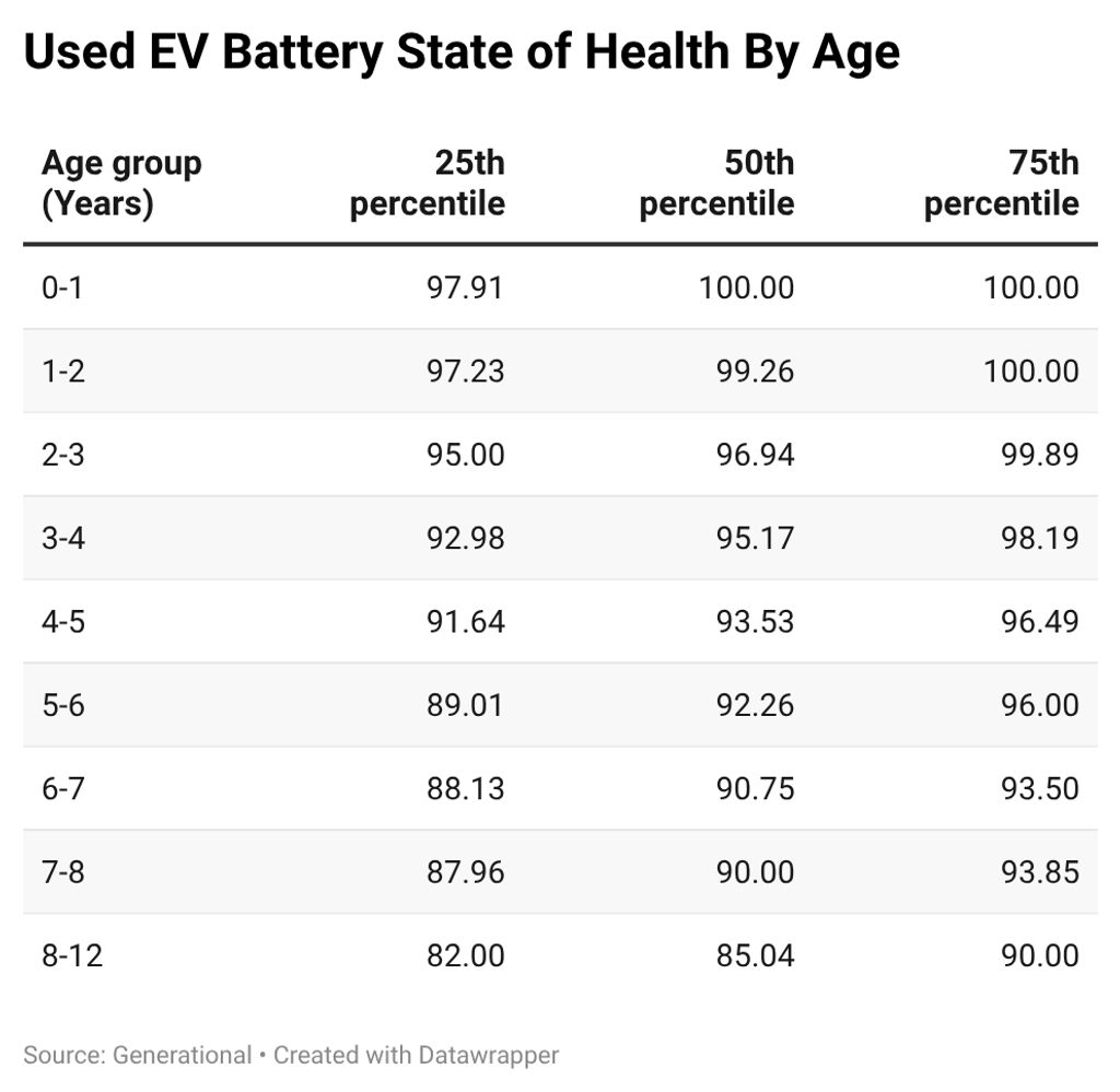 Generational, a UK-based firm that evaluates EV battery health, collected data from over 8,000 EVs tested in 2025. Most of the cars the company tested had healthy batteries with close to their original capacity.