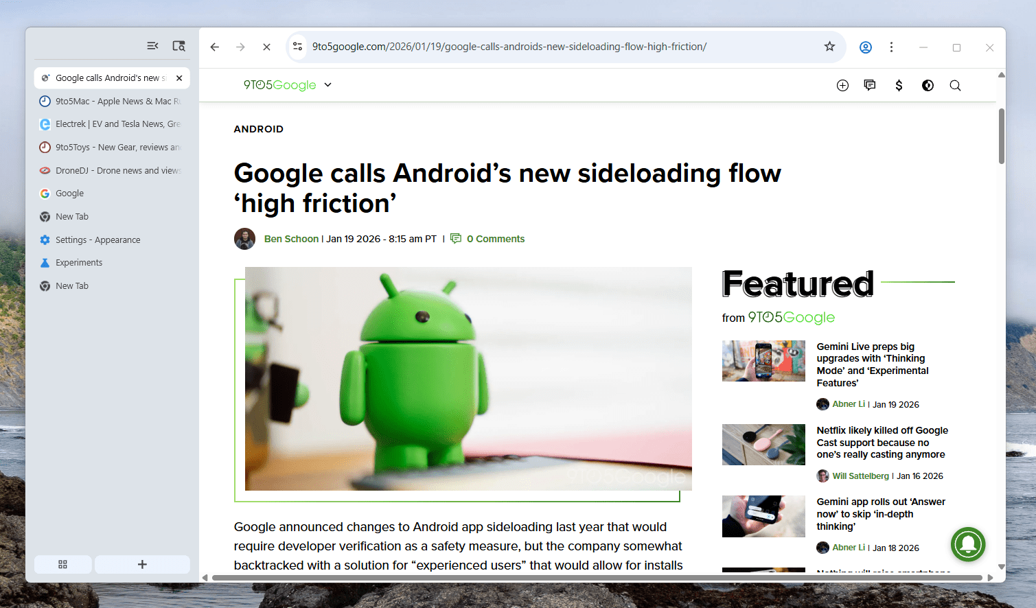 Google Chrome v145 should hit the stable track in February, but since the vertical tabs feature isn’t enabled by default, it may or may not actually go live in that version.