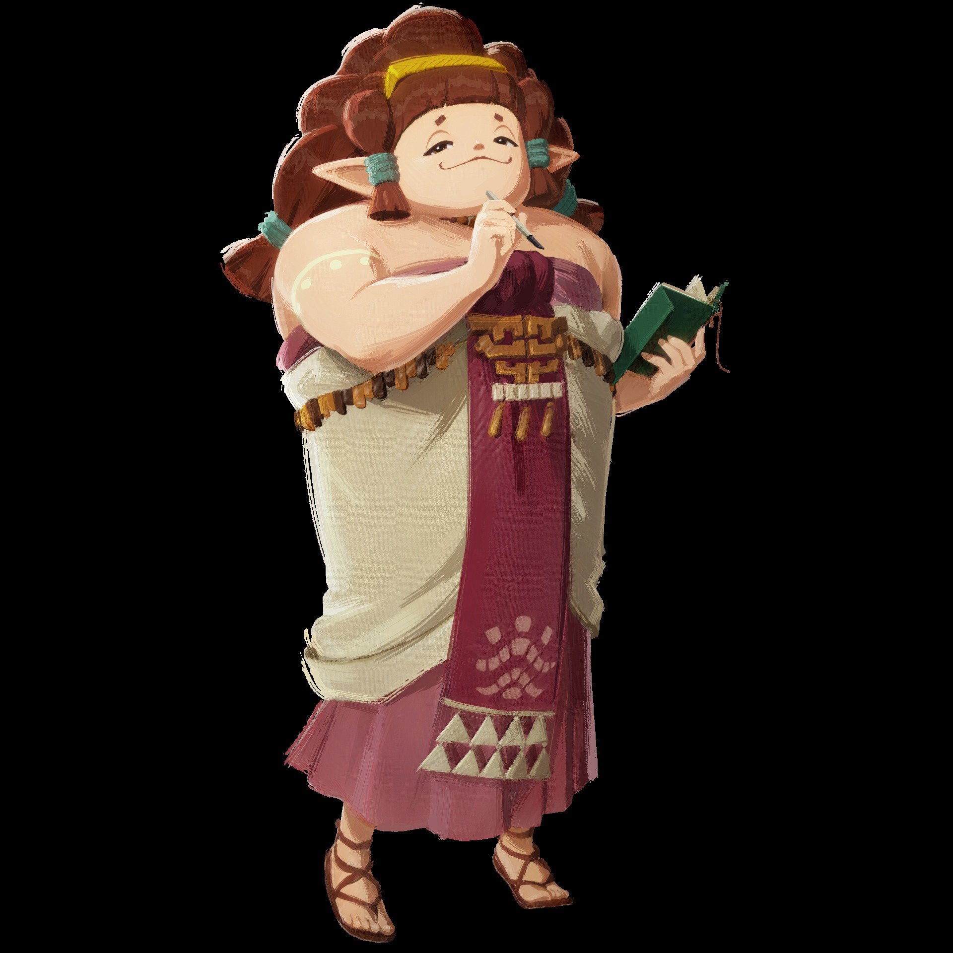 Zelda’s maid. Though she has a gentle personality, she is quick at her work and is trusted by Rauru. She has a strong curiosity about the mystical and always carries her record book with her.