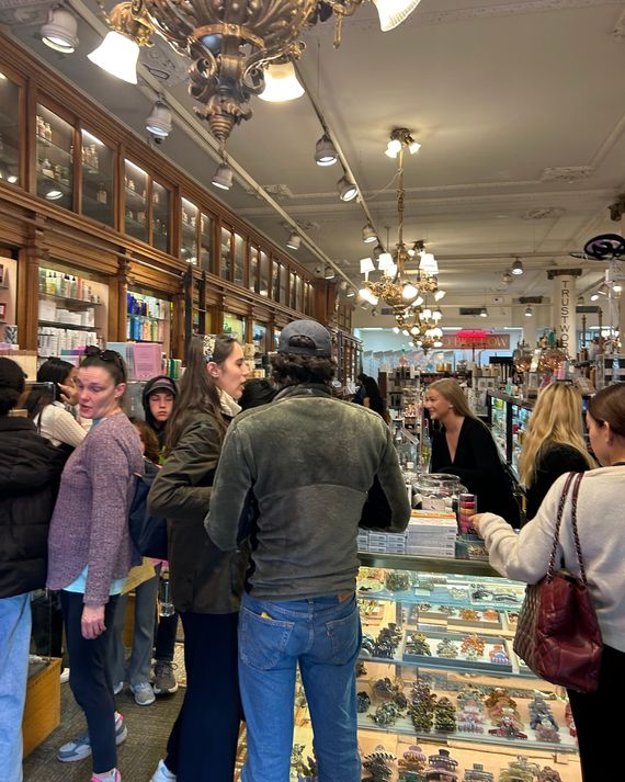 On my way to C.O. Bigelow, I spotted a girl in a cream-colored claw clip and a pair of “Carolyn” sunglasses from Selima Optique. The lack of a line snaking out the front made me hopeful that the inside might be similarly empty. I was, unfortunately, wrong: For 3 p.m. on a Wednesday, it was packed. Dozens of teen girls and young women in their 20s (and one token boyfriend) were clumped into groups, trying on plastic headbands, some with piles of them in different colors sitting on the countertops, and twisting and throwing one another’s hair into loose chignons with French pins and barrettes. “We are such girls!” one said to her friend. They were all gathered around the front counter, where hundreds upon hundreds of plastic hair accessories — clips, claws, combs — in neutrals, pastels, and wacky patterns were set inside of glass cases like untouched pastries.